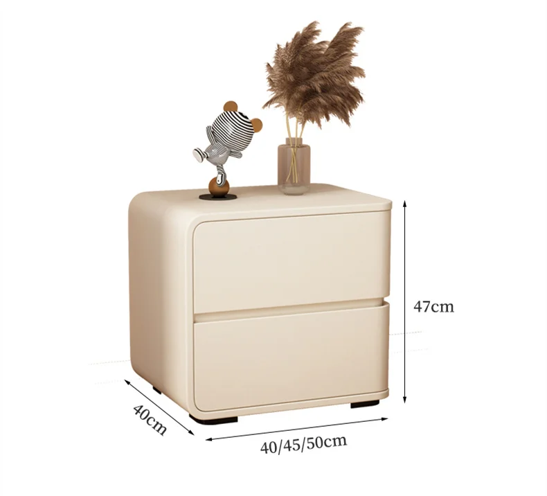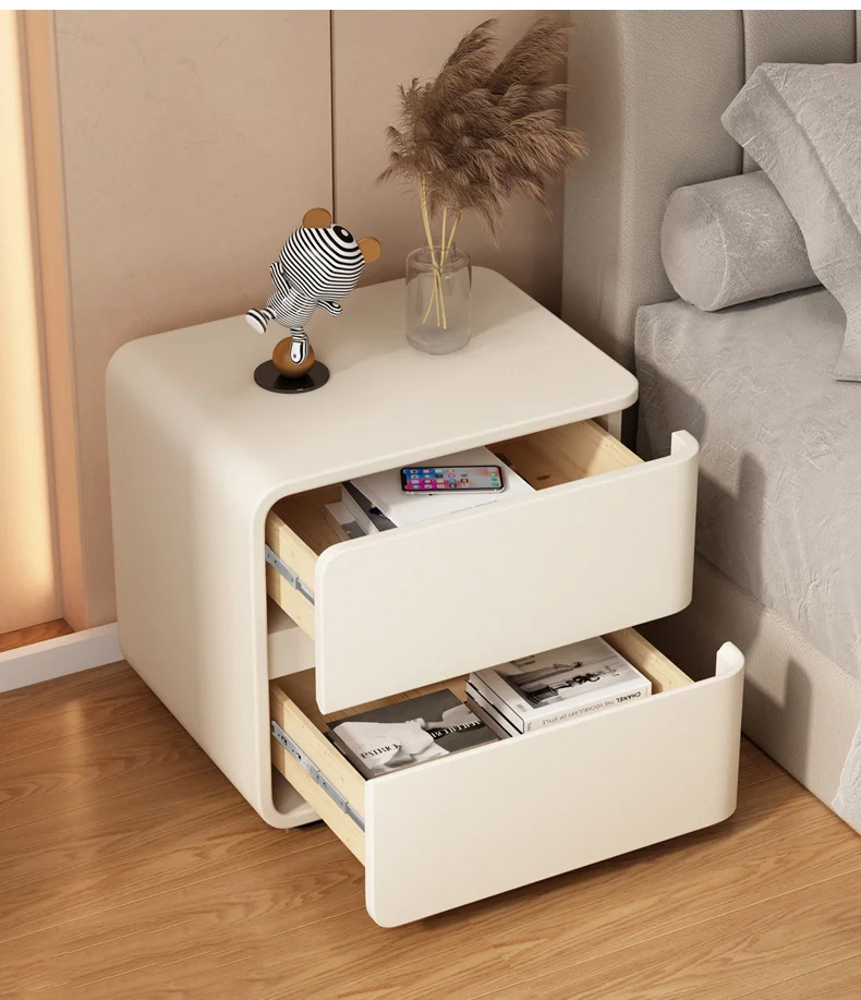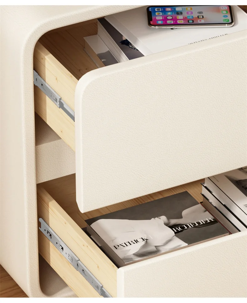 Solid Color Leather Bedside Table Modern Style Living Room Storage Side Cabinet Bedroom Wooden Nightstands End Table