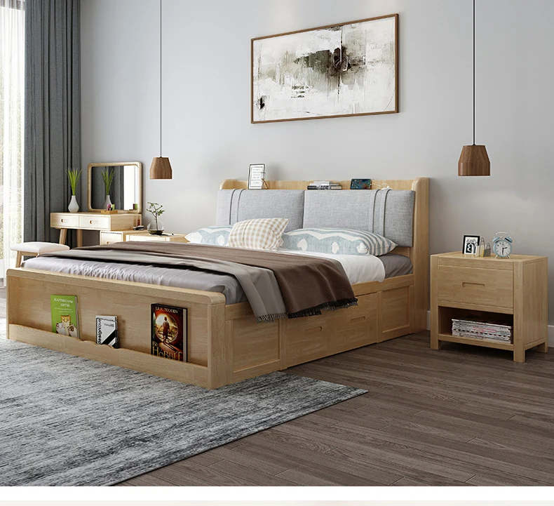 Solid wood bed double bed large bed European solid wood master bedroom 1.8 m wedding bed with storage