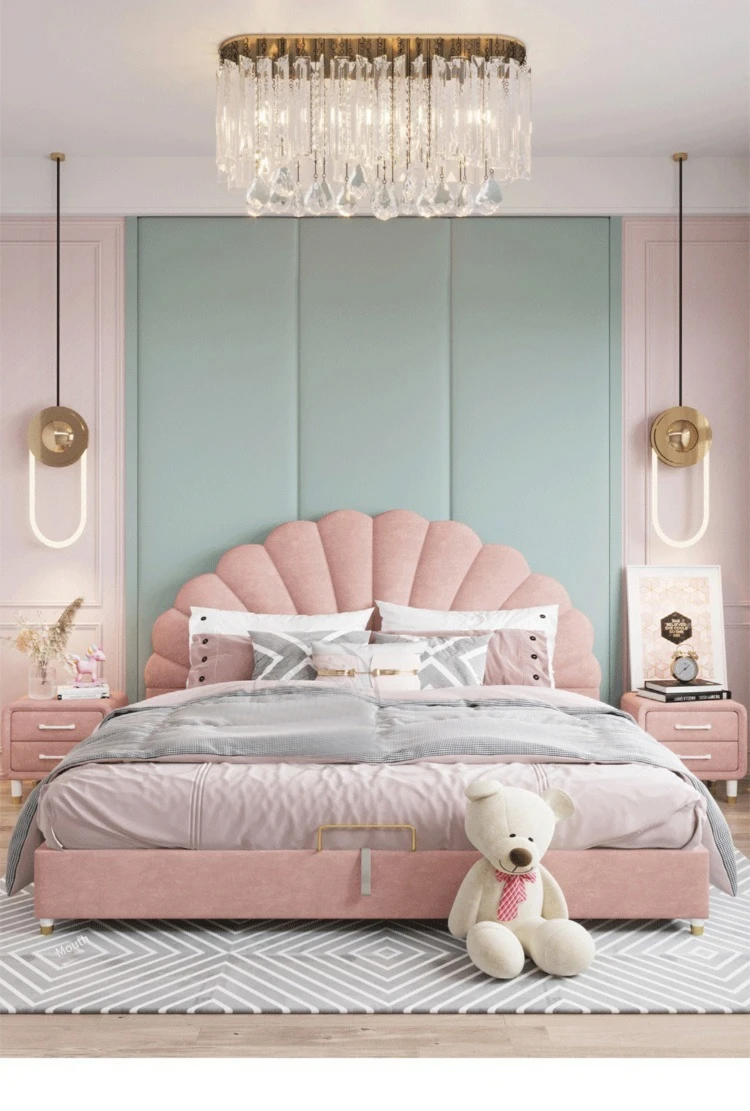 Solid Wood Pink Color Big Princess Children's Bed Girl Bed 2 To 14 Years Olds Kid Bed Bedroom Furniture Set Lit Enfant Fille
