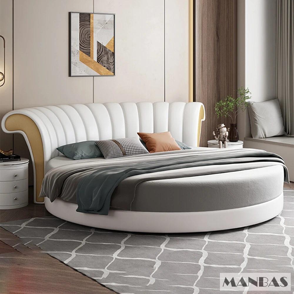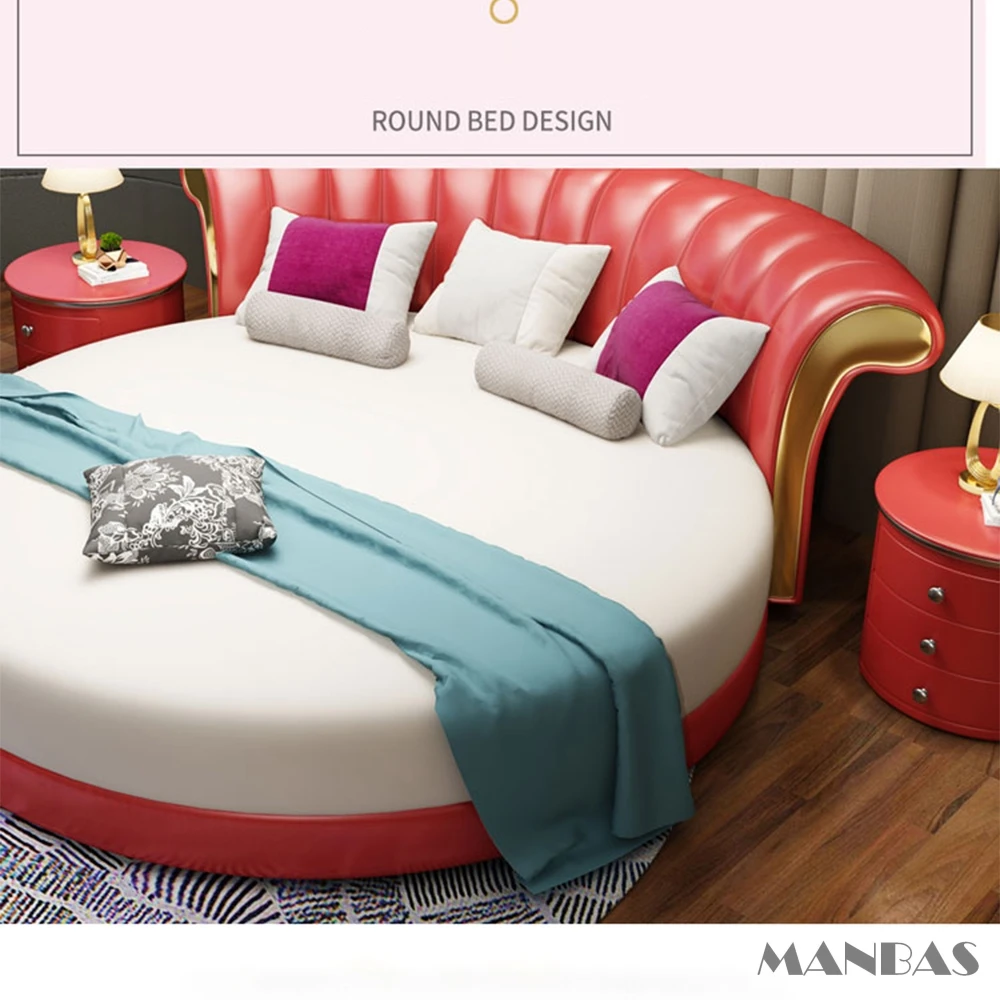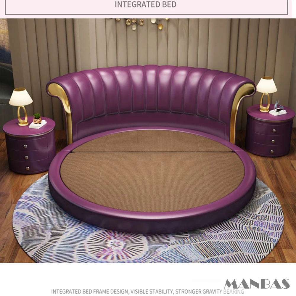 Upgrade Your Sleeping Experience with Linlamlim Round Leather Bed Frame Italian Genuine Leather Double Beds Lit 2 Personnes