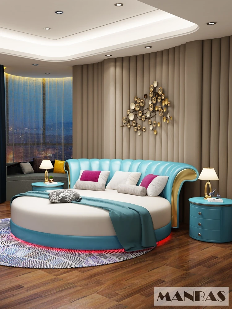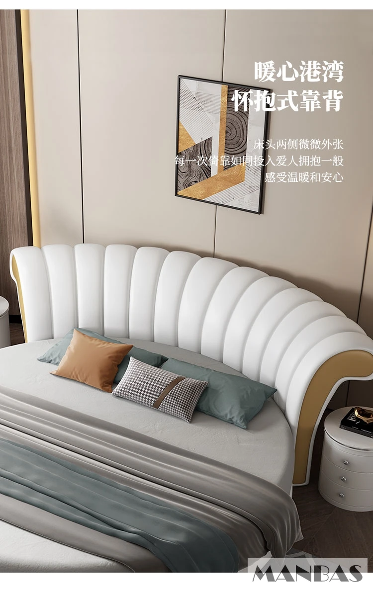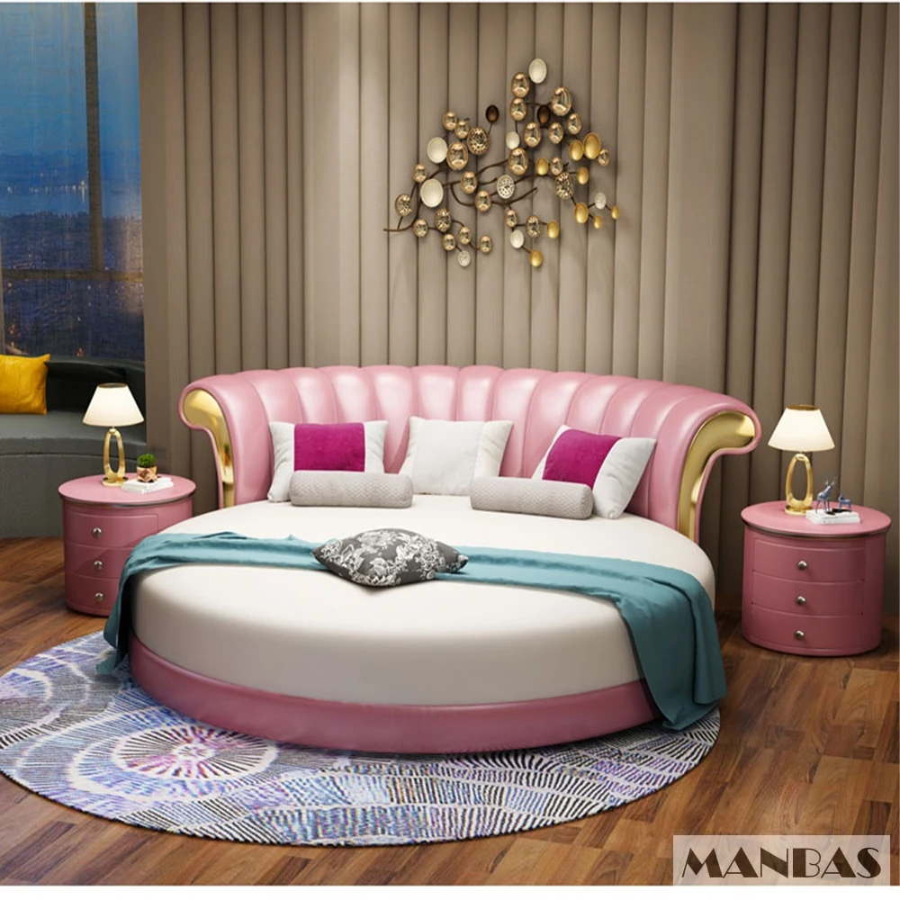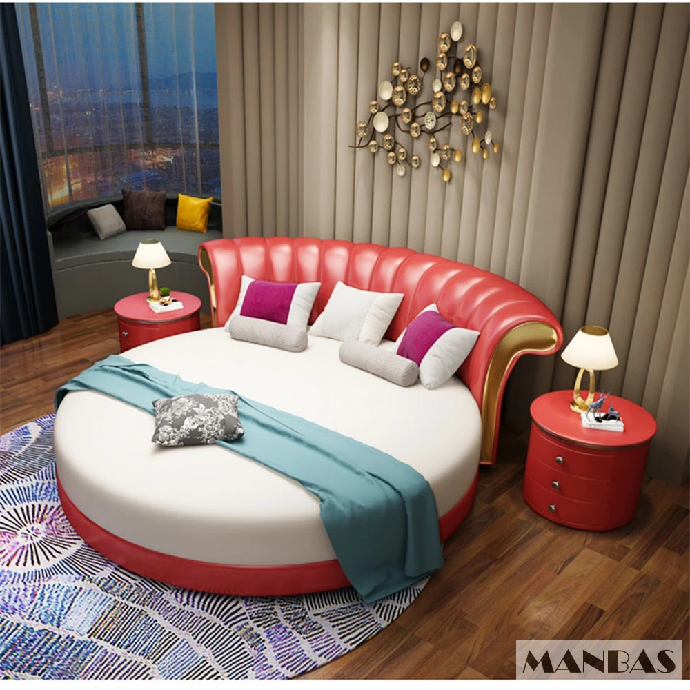 Upgrade Your Sleeping Experience with Linlamlim Round Leather Bed Frame Italian Genuine Leather Double Beds Lit 2 Personnes