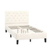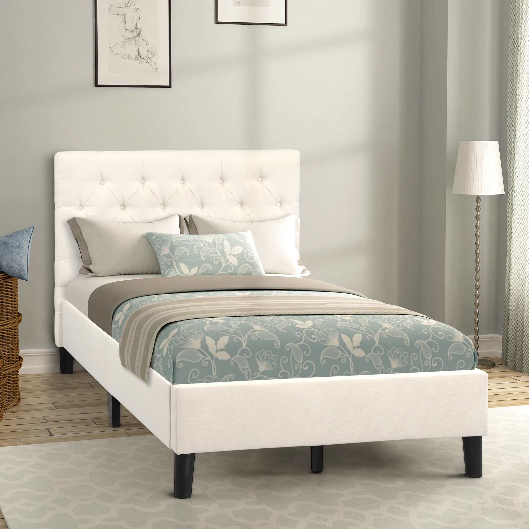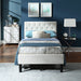 The upholstered twin bed has sturdy wood frame construction to add stability and durability for a great night’s sleep.