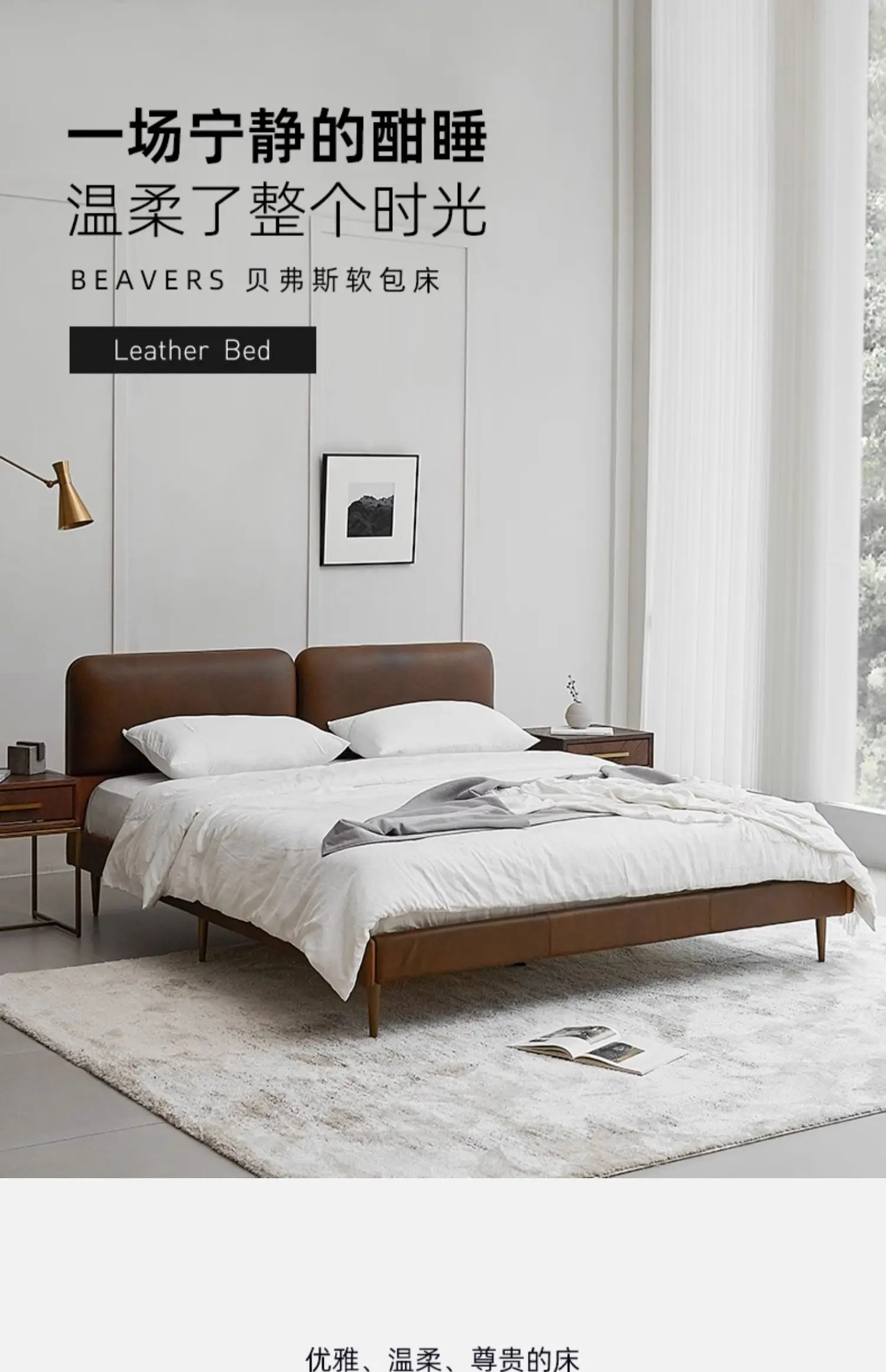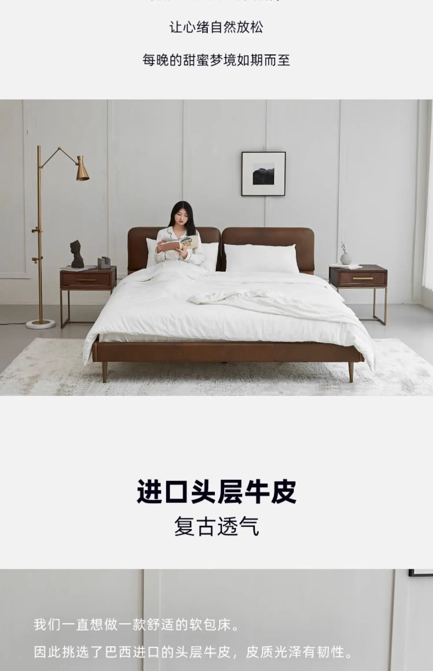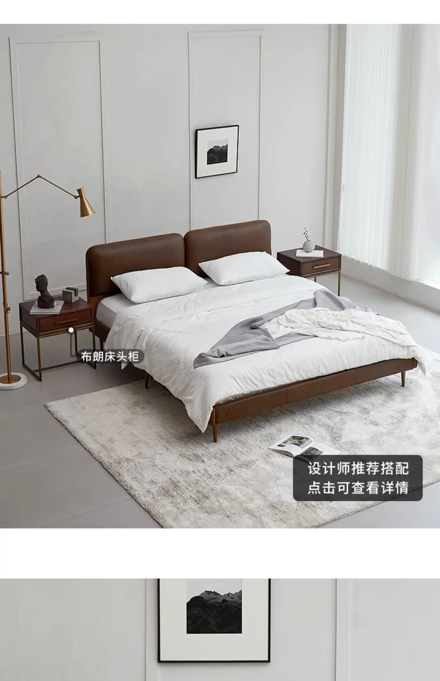 Urban modern minimalist leather bed designer furniture double bed Italian minimalist master bedroom Nordic light luxury style