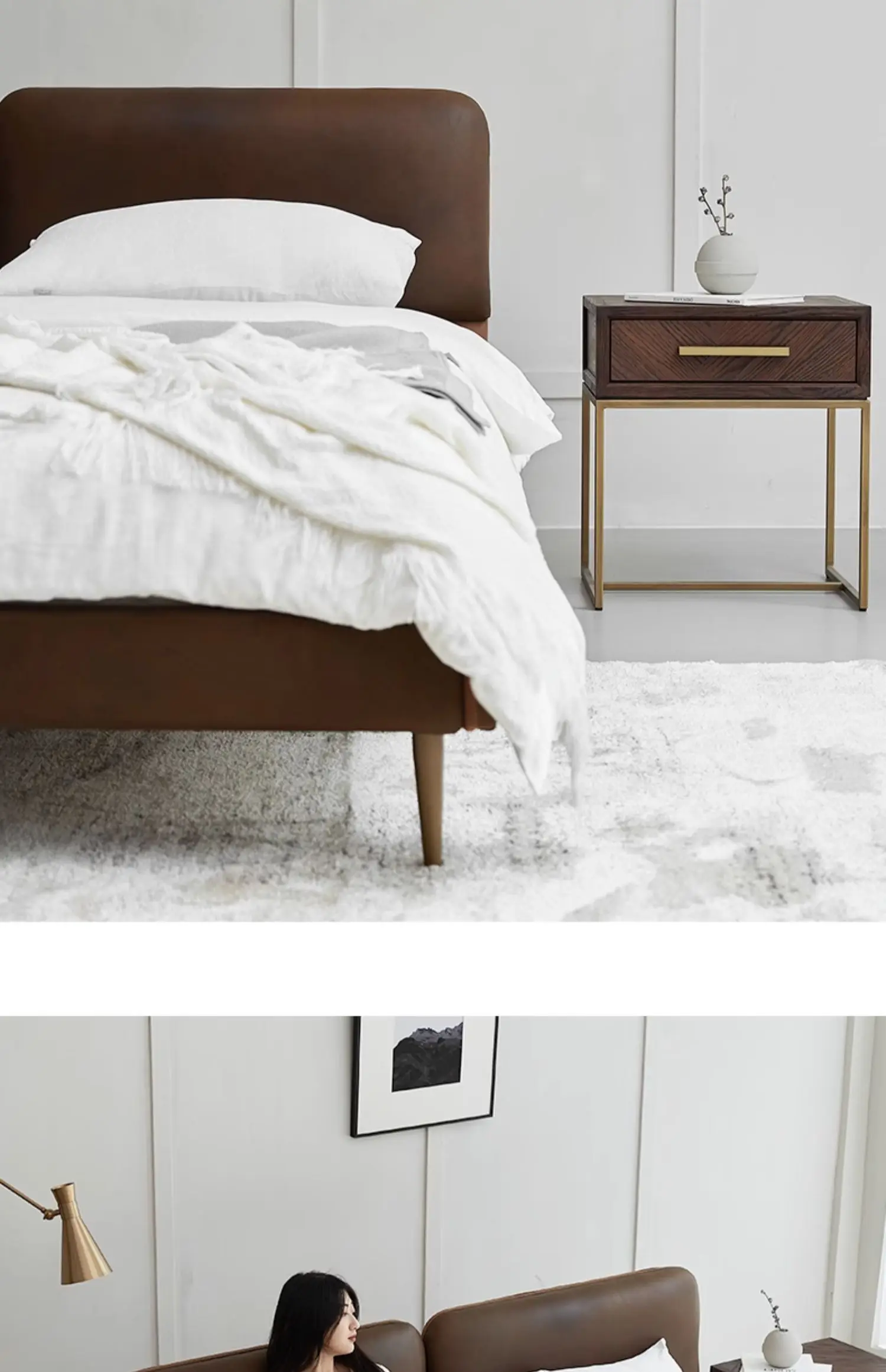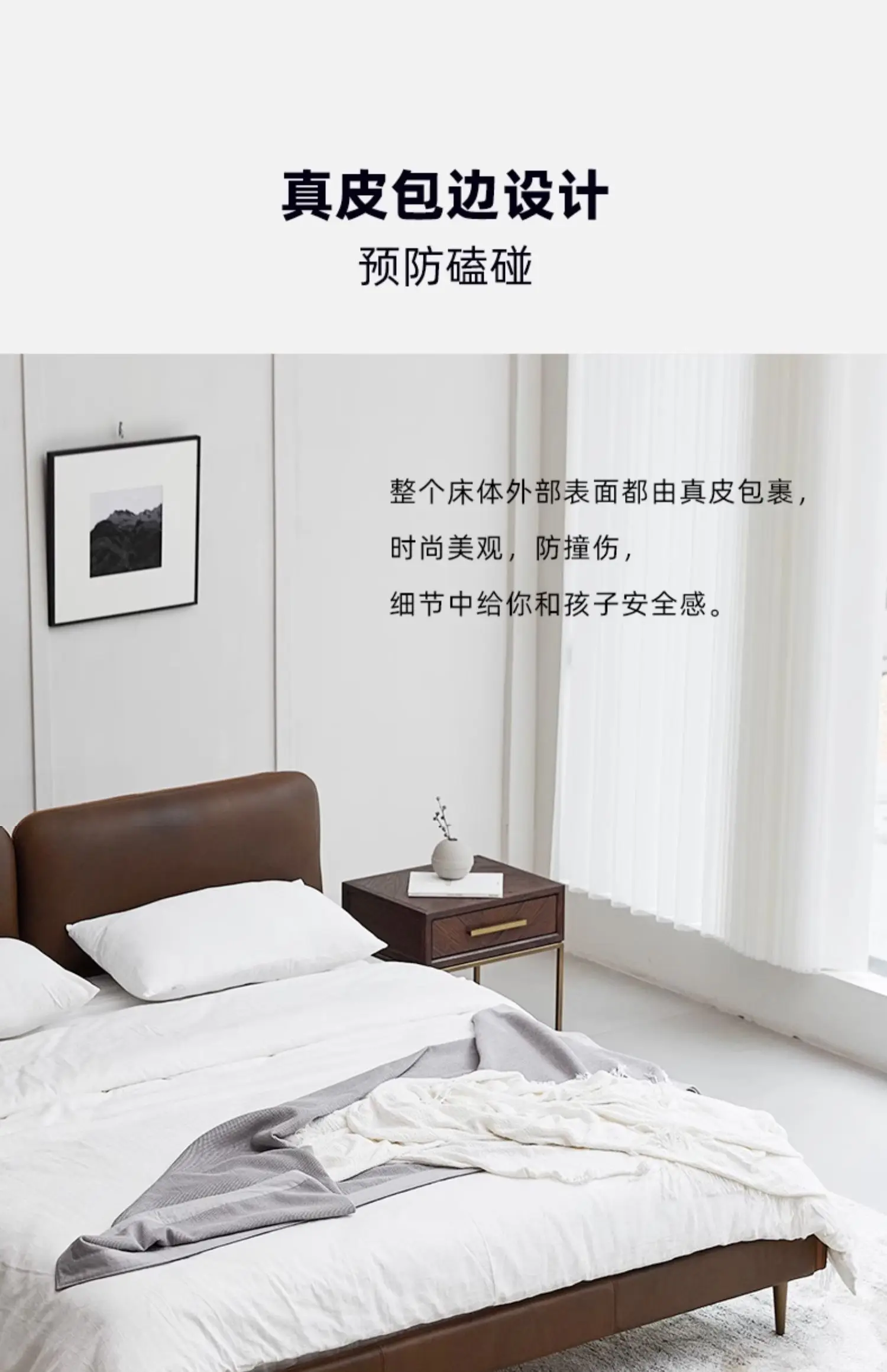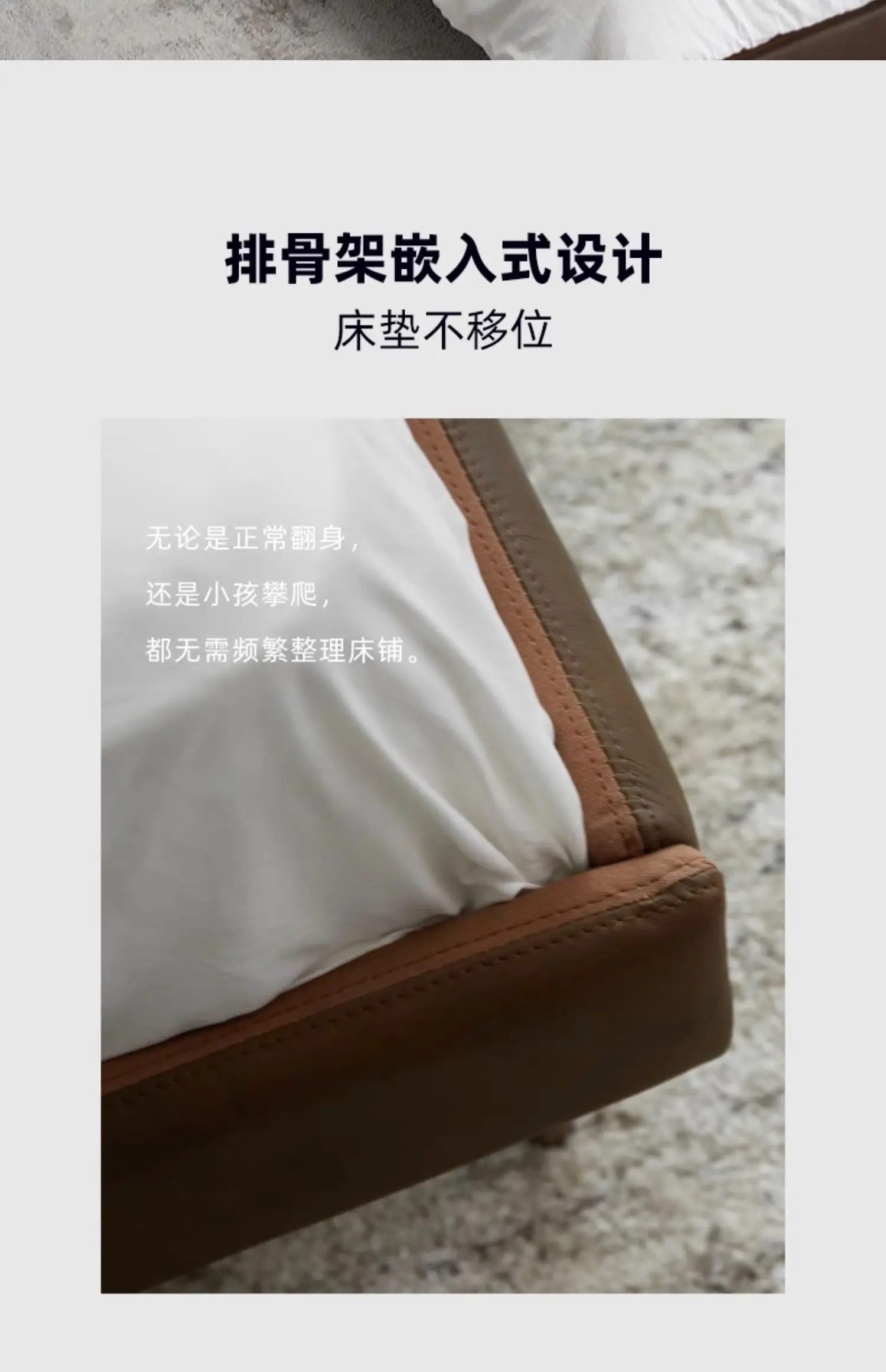 Urban modern minimalist leather bed designer furniture double bed Italian minimalist master bedroom Nordic light luxury style