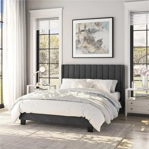 Original price $1,398.99Original price $1,398.99 - Original price $1,398.99Original price $1,398.99Current price $1,048.99$1,048.99 - $1,048.99Current price $1,048.99| /Queen Elastic Bed Frame King Size Wingback Bed With Wooden Support Slats With Tufted Headboard Dark Gray Bedroom Beds Headboards