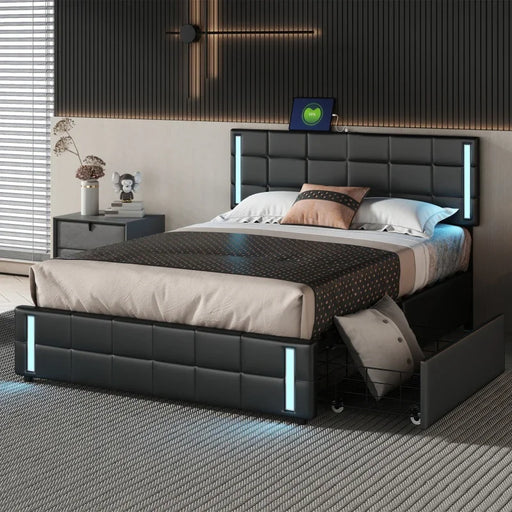 Original price $1,432.99Original price $1,432.99 - Original price $1,432.99Original price $1,432.99Current price $1,145.99$1,145.99 - $1,145.99Current price $1,145.99| /Upholstered Platform Bed with LED Lights and USB Charging, Storage Bed with 4 Drawers, Black
