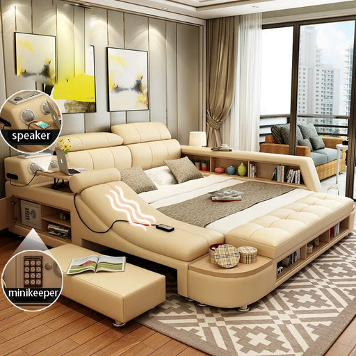 Original price $9,676.99Original price $9,676.99 - Original price $9,676.99Original price $9,676.99Current price $7,741.99$7,741.99 - $7,741.99Current price $7,741.99| /Genuine Leather multifunctional massage bed frame Nordic camas ultimate bed Bluetooth speaker safe air cleaner Iphone USB charge