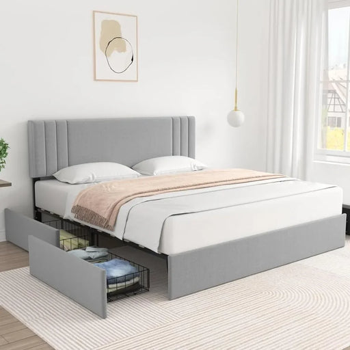Original price $553.99 - Original price $846.99Original price $553.99 - Original price $846.99Original price $553.99$442.99 - $677.99$442.99 - $677.99Current price $442.99| /Bed Frame, Upholstered Large with 4 Storage Drawers and Adjustable Headboard, Sturdy Plank Support, Platform Bed Frame