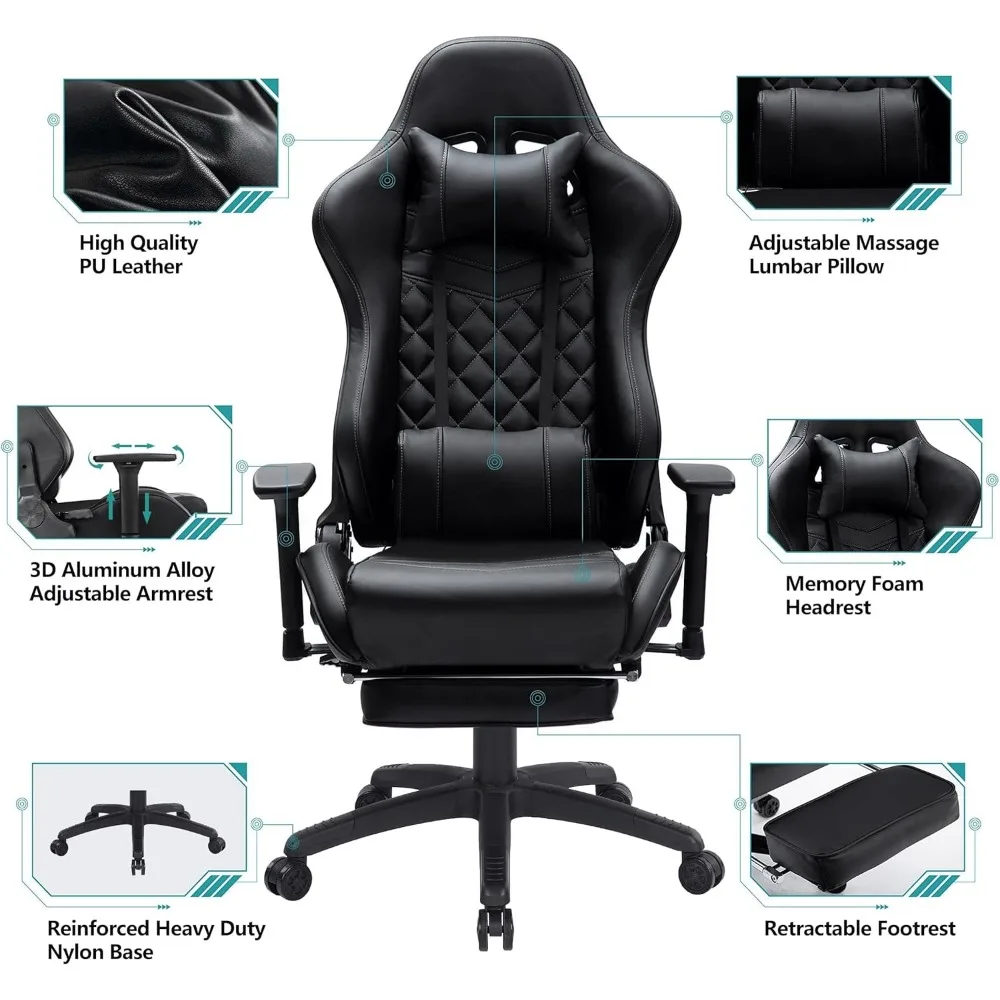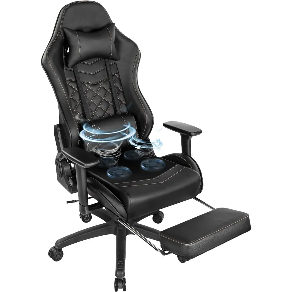 Blue Whale Massage Gaming Chair for Adults, 350LBS Office Chair with Retractable Footrest, Adjustable Armrest, Classic PU