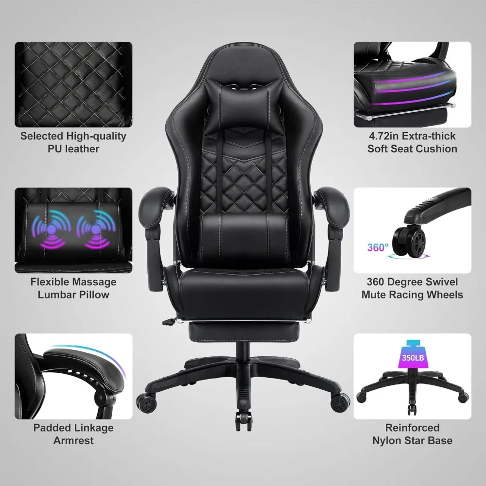 - Stable and Reliable - The massage game chair is made of high-quality leather, fabric and memory foam to ensure that you can enjoy our chair for many years! The heavy metal base with reinforced metal frame, three-level explosion-proof gas elevator and silent PU casters provides a strong base for the chair, which can withstand 350 pounds.