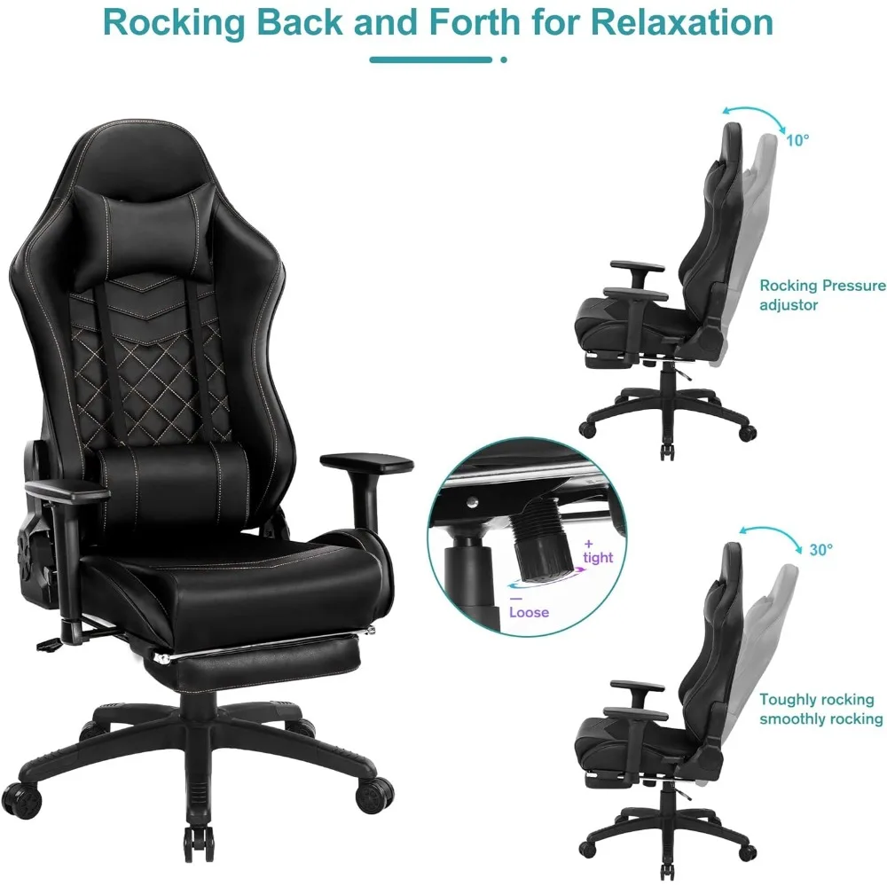 - Excellent Strong Assistance - Thickened can disperse the pressure of waist and buttocks. Medium softness is more suitable for focusing on office games. High quality PU leather wraps the whole throne, making it unforgettable both in appearance and skin experience. Under the wide angle of 90 ° to 155 ° and the freely retractable pedal, you can lie on the chair in one second.