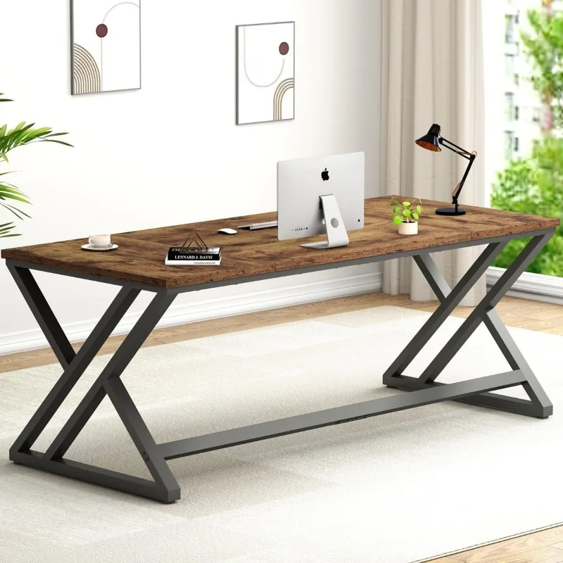Computer Desk, Large Industrial Pc Study Home Office Desk, Long Modern Wood Gaming Work Writing Desk for 2 Person