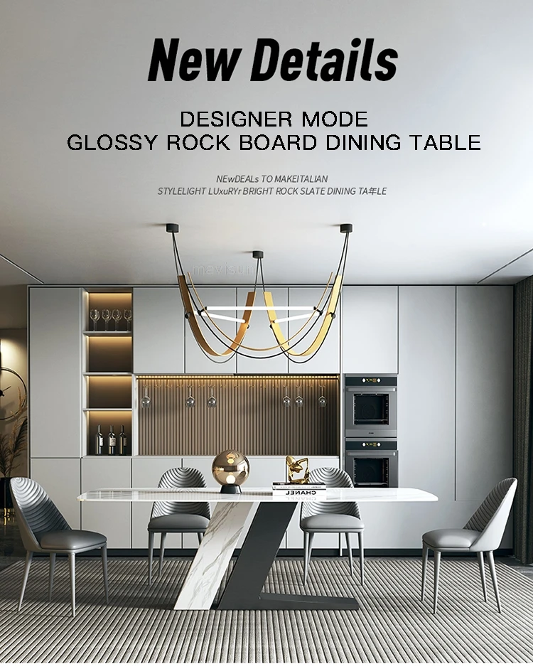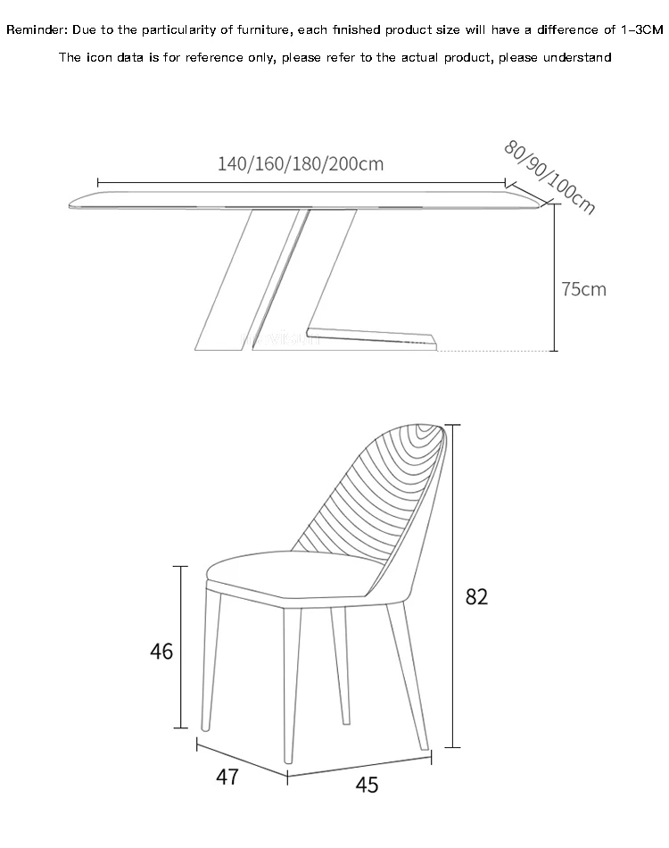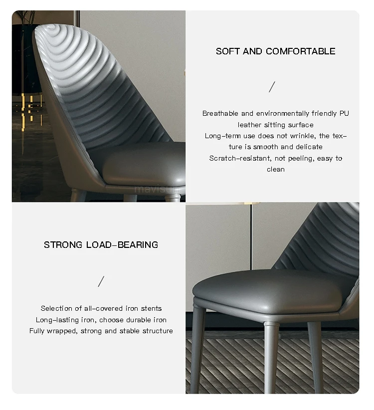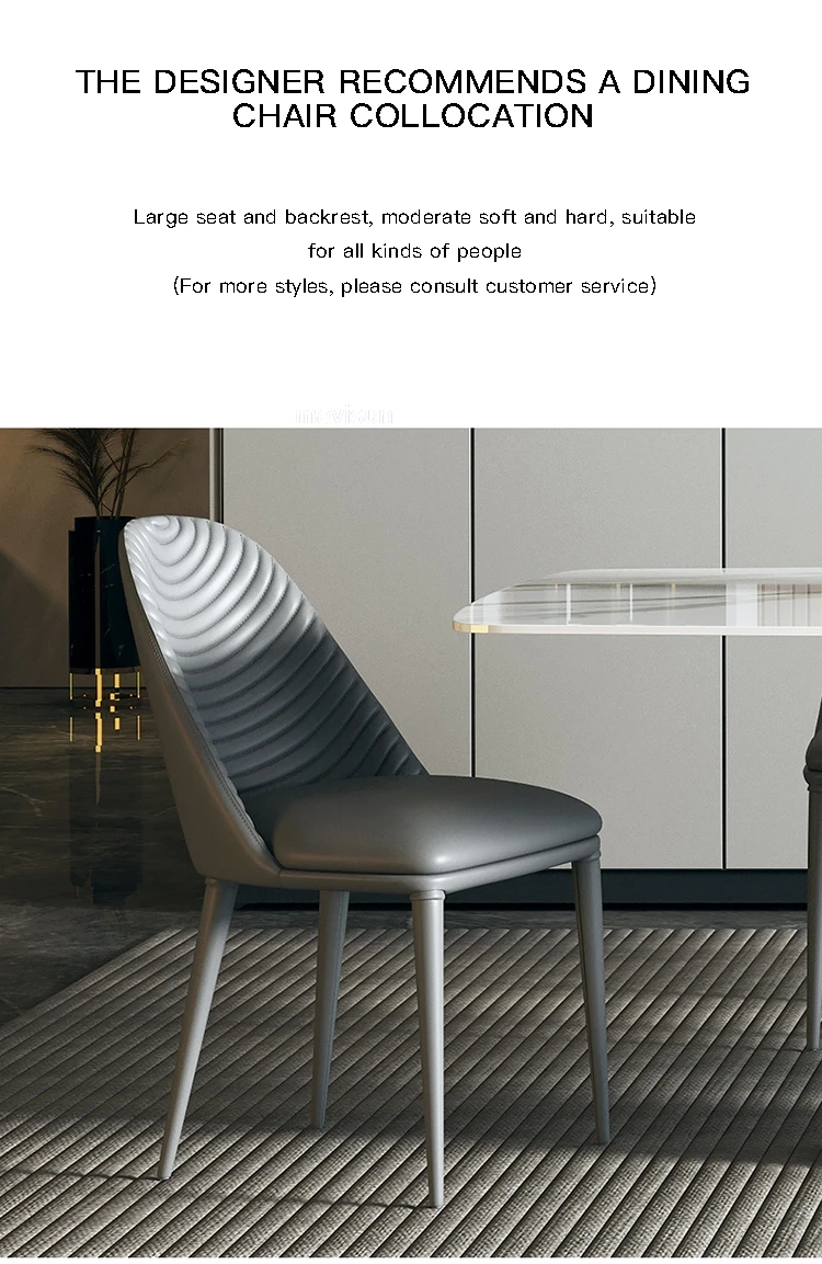 Dining Chairs:The seating surface of the dining chair is made of environmentally friendly pu leather, the interior is filled with high-density sponge, and the support of the dining chair is made of a full-covered iron bracket.