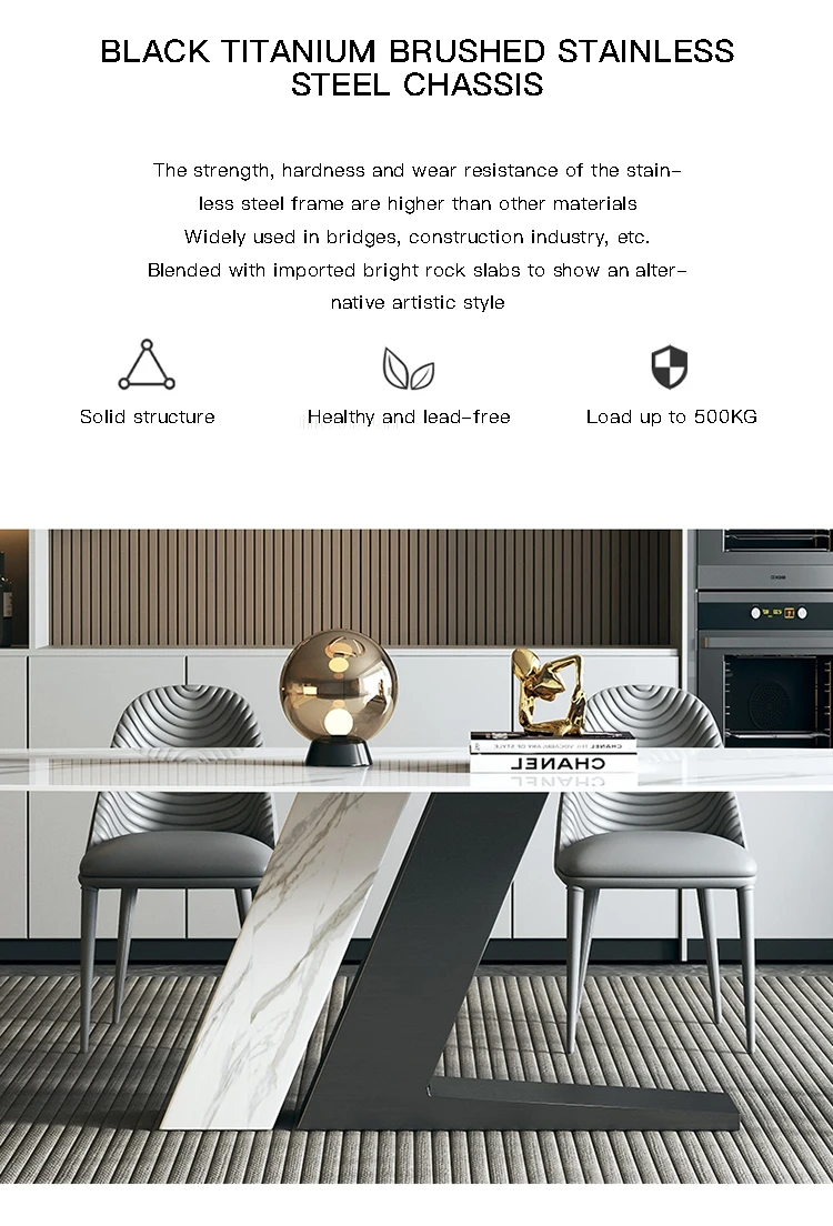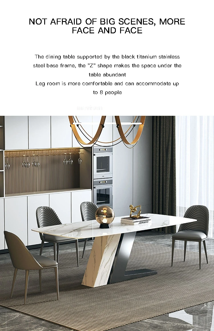 A.The Z-shape gives plenty of space under the table, double reinforcement, and the load-bearing capacity is increased by 10 times.The dining table can accommodate up to 8 people.
