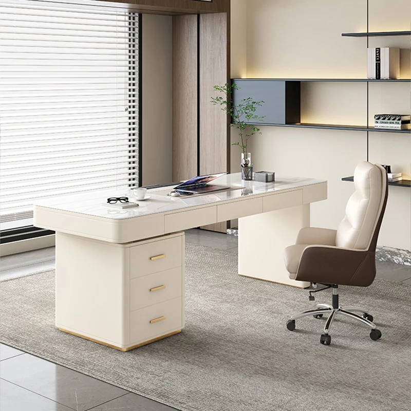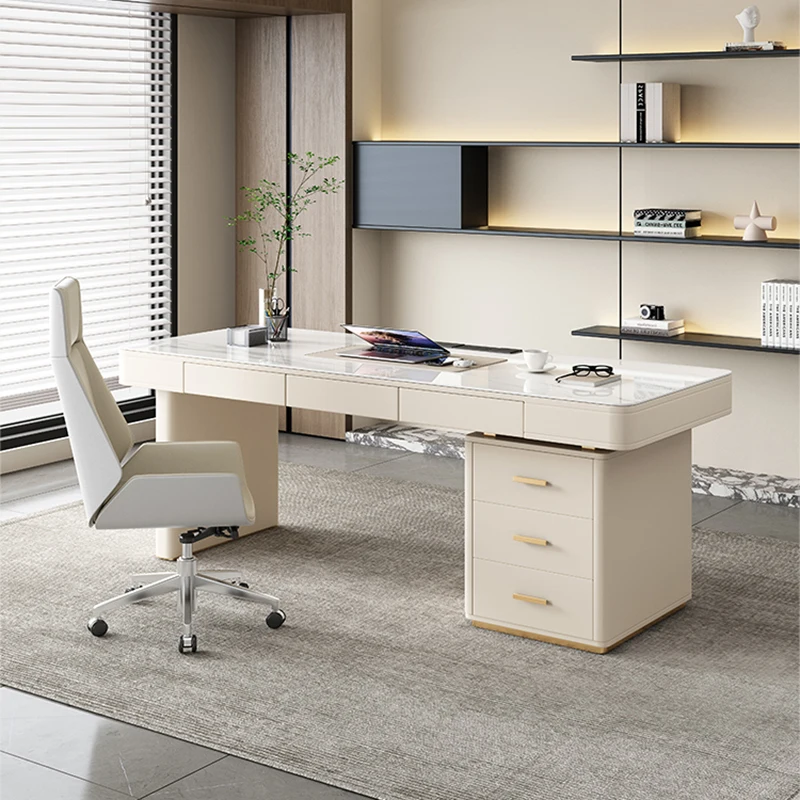 Cream Style Light Luxury Rock Board Desk Modern Simple Business Furniture High-end Writing Office Desk Study Room Computer Desk
