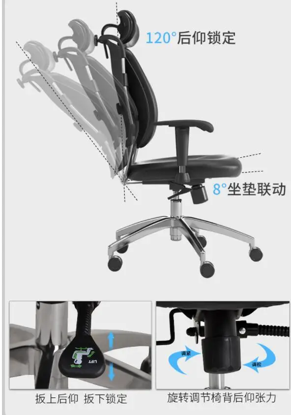 Double Back Leather Ergonomic Office Armchair A Legroom Boss Furniture High-End Rotated Rocking Executive Swivel Gaming Chair