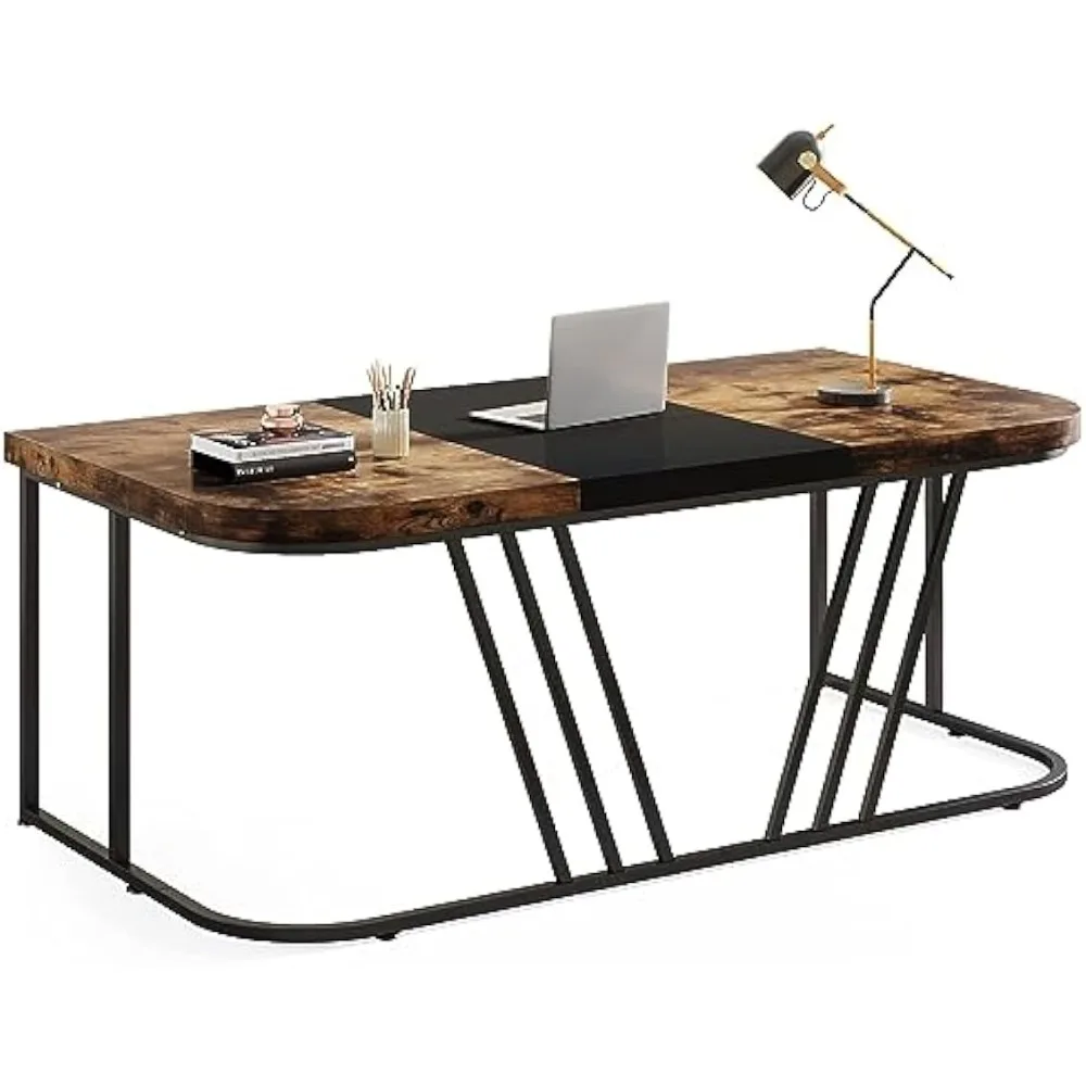 Executive Desk, Home Office Computer Desk, Rustic Large Conference Table with Heavy Duty Metal Frame, Bussiness Fu