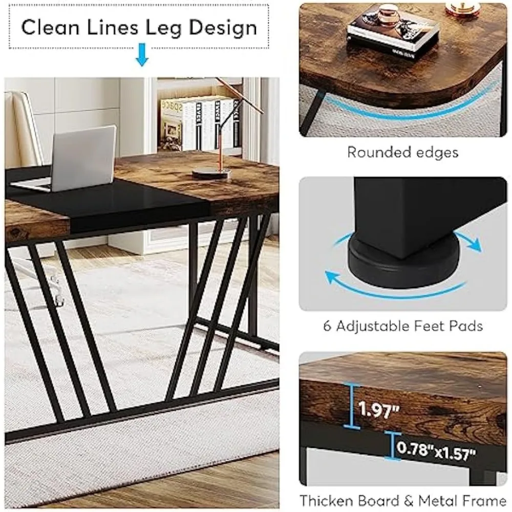 - REFINED & MODERN DESIGN - This executive desk features a vintage rustic brown black tabletop and metal legs that exude elegance and sophistication, creating a refined and elegant look that seamlessly complements any office decor. Measuring 63" W x 31.5" D x 29.5" H, it's designed to inspire creativity and productivity.