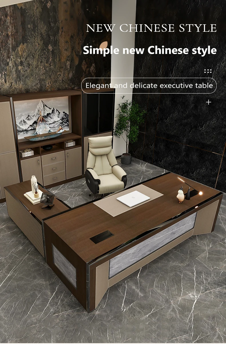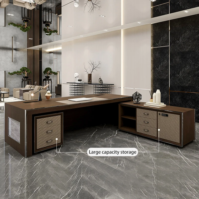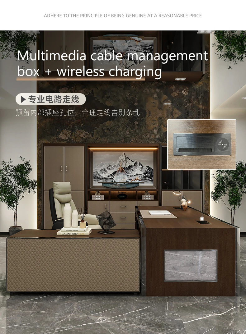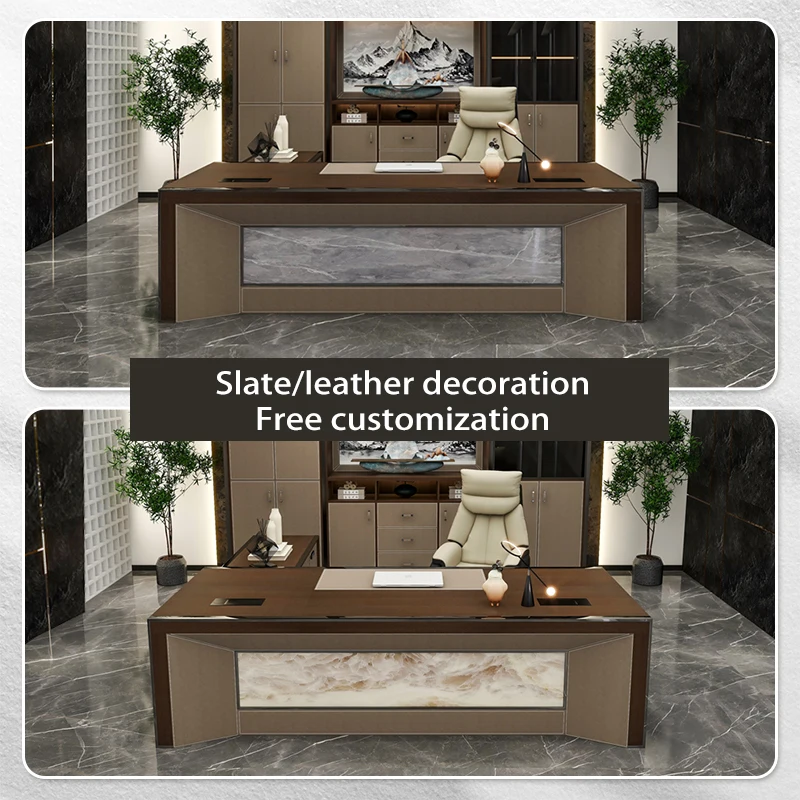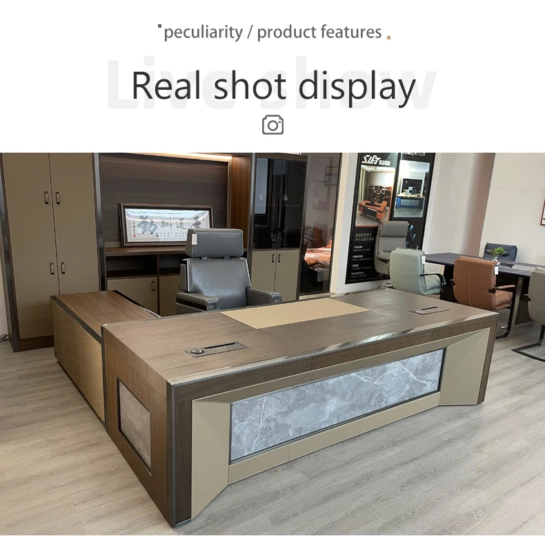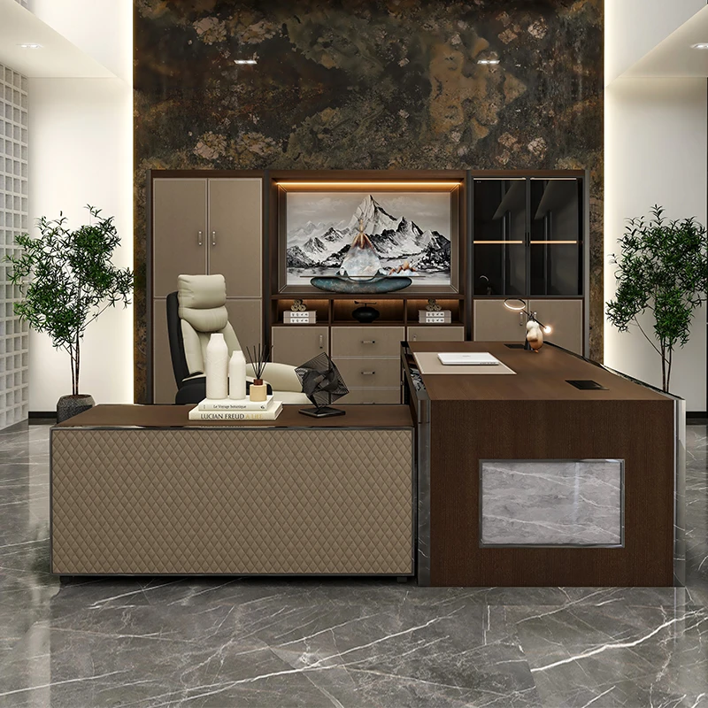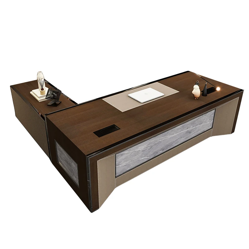 Executive Desk, Office desk Computer Desk Leather Finshed Modern L Shape Boss desk Workstation Business Furniture for Office