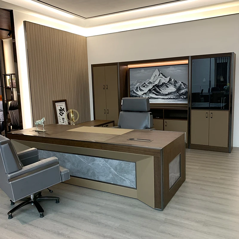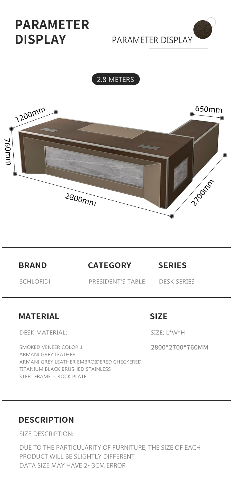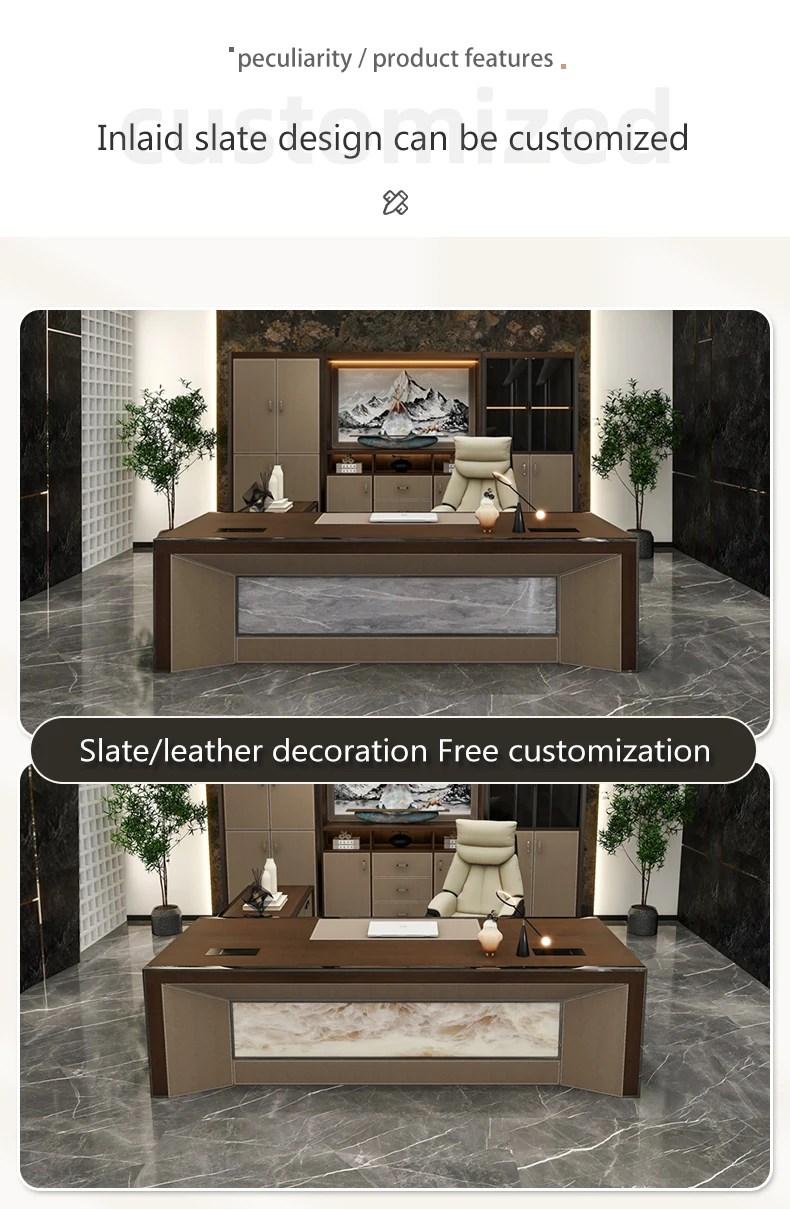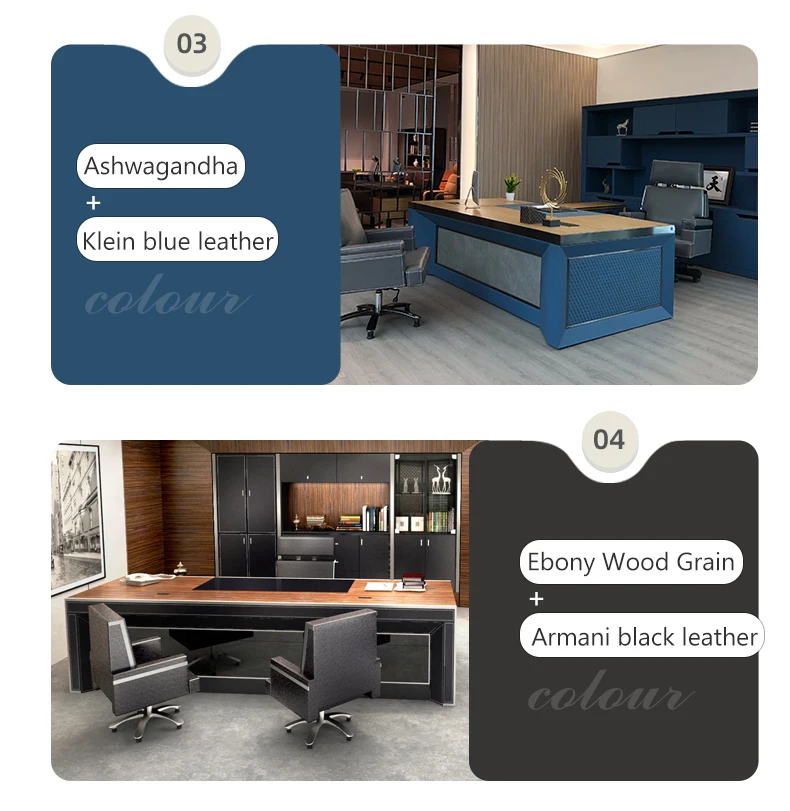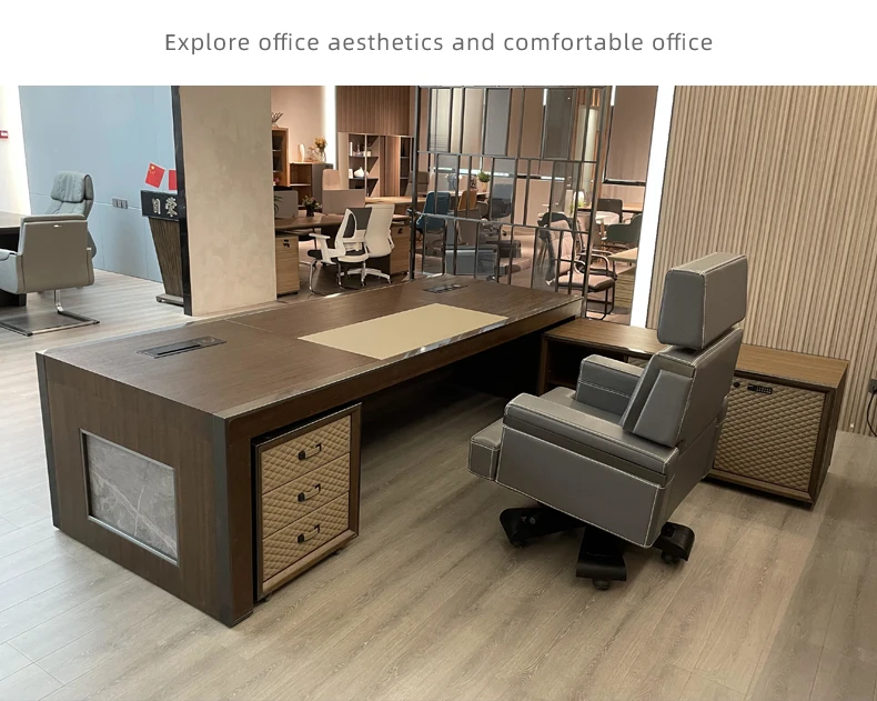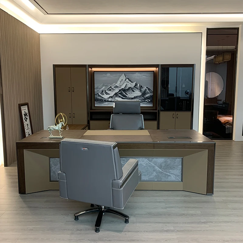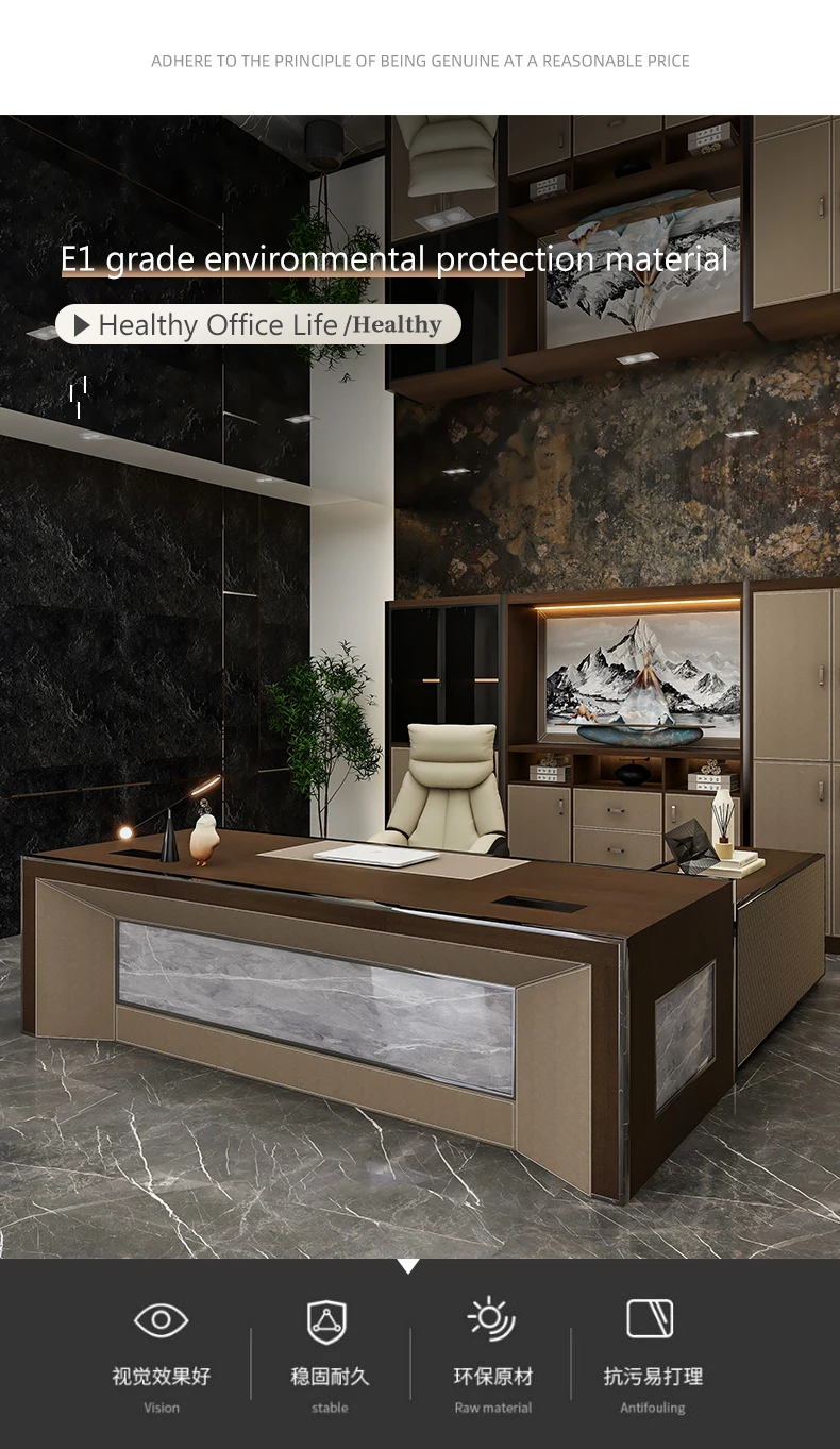 Executive Desk, Office desk Computer Desk Leather Finshed Modern L Shape Boss desk Workstation Business Furniture for Office