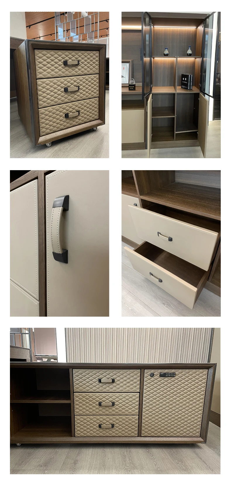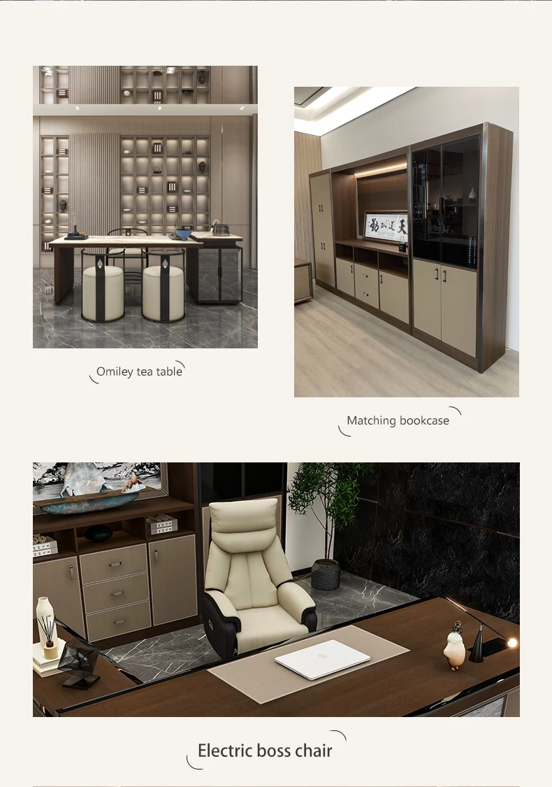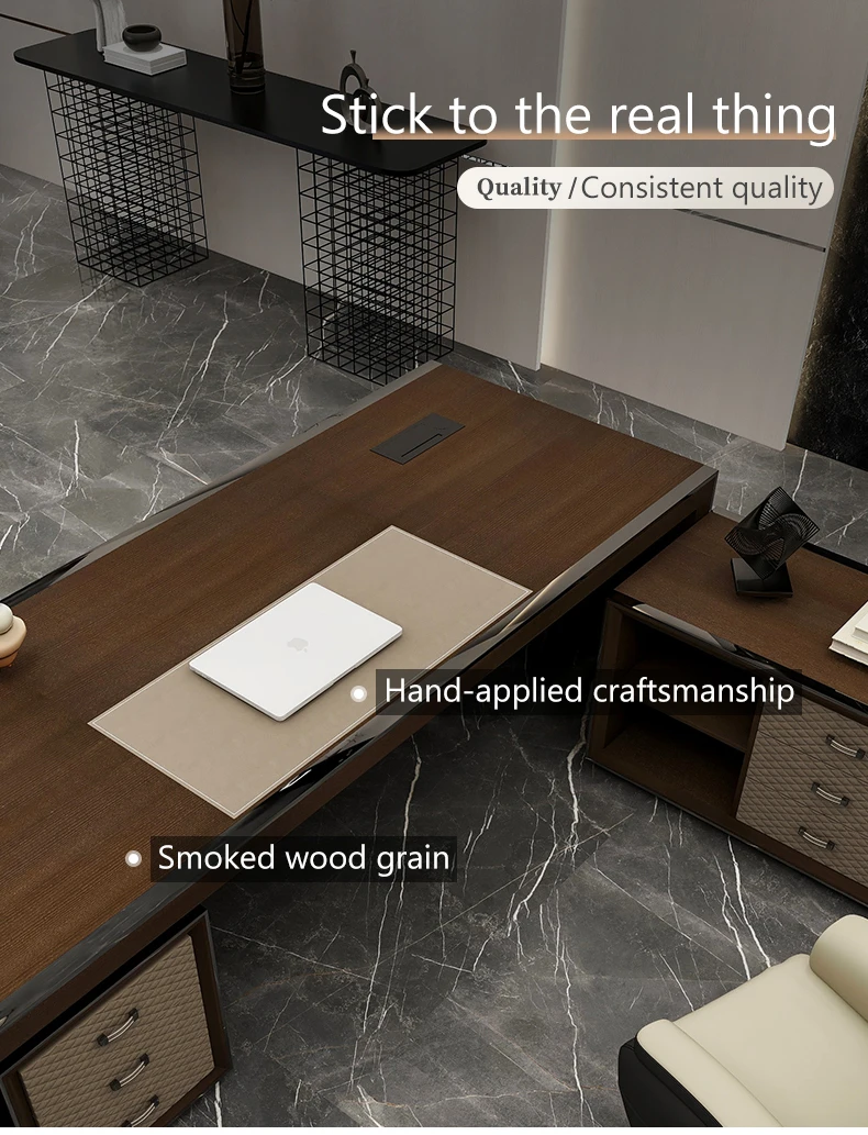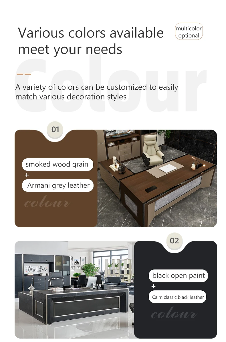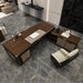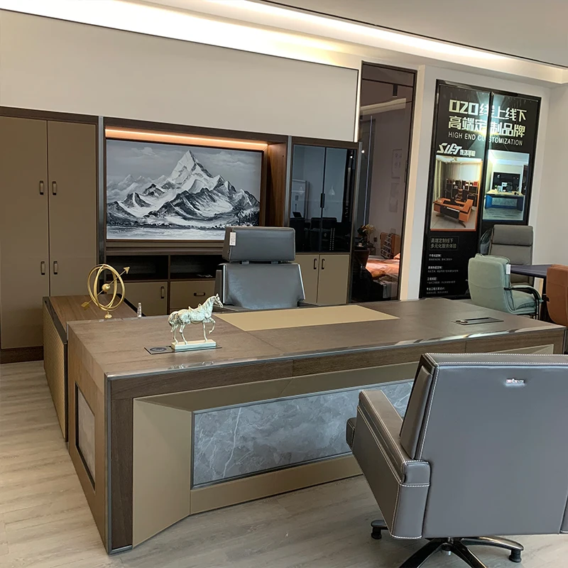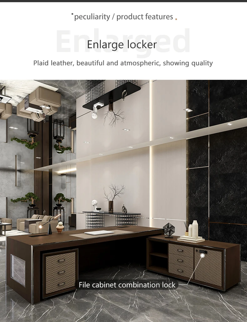 Executive Desk, Office desk Computer Desk Leather Finshed Modern L Shape Boss desk Workstation Business Furniture for Office