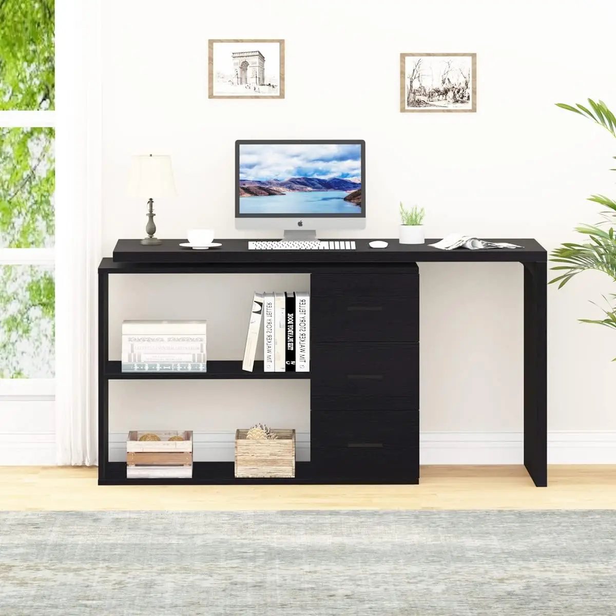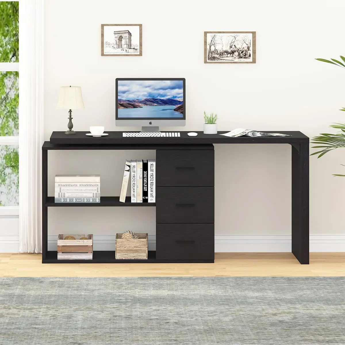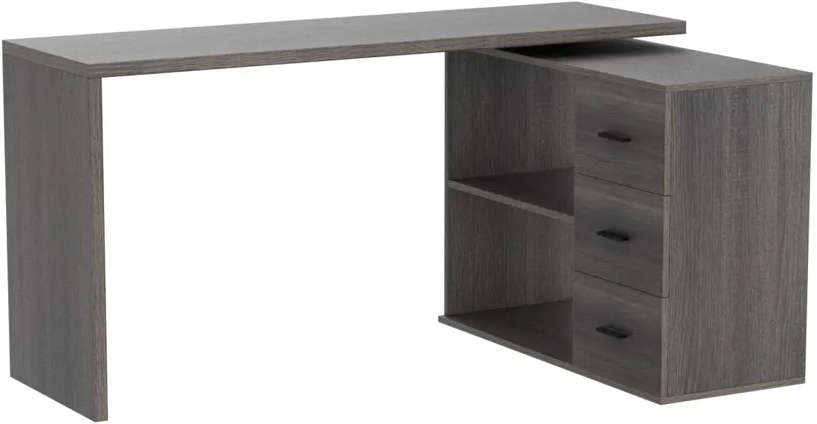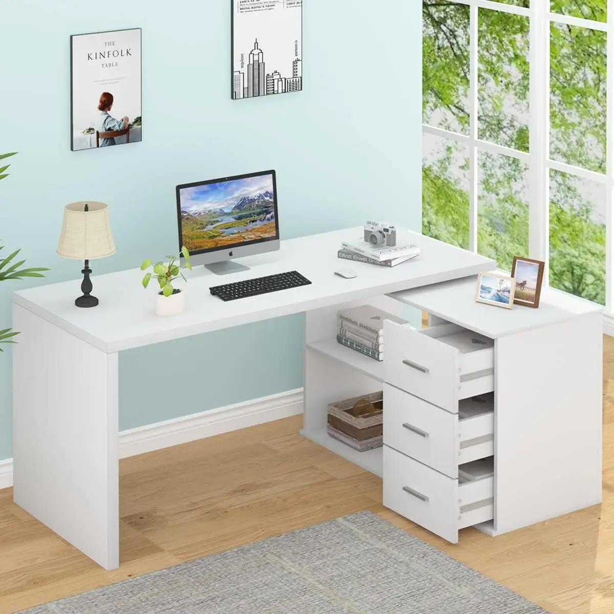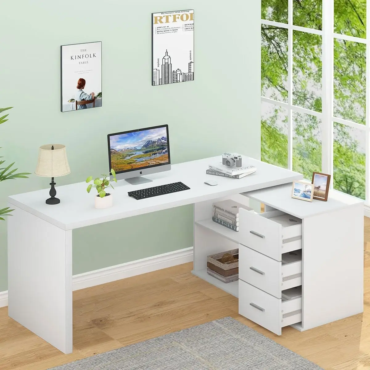 - Keep Clutter out of Sight and out of Mind: The open and long 2 tier shelves of the L shape desk provide a place for essential office supplies at arm's reach, while the 3 drawers let you tuck away anything from loose odds and ends to important files. The shelves and drawers of the L shaped desk maximally utilize your home office and provide enough space for storage.