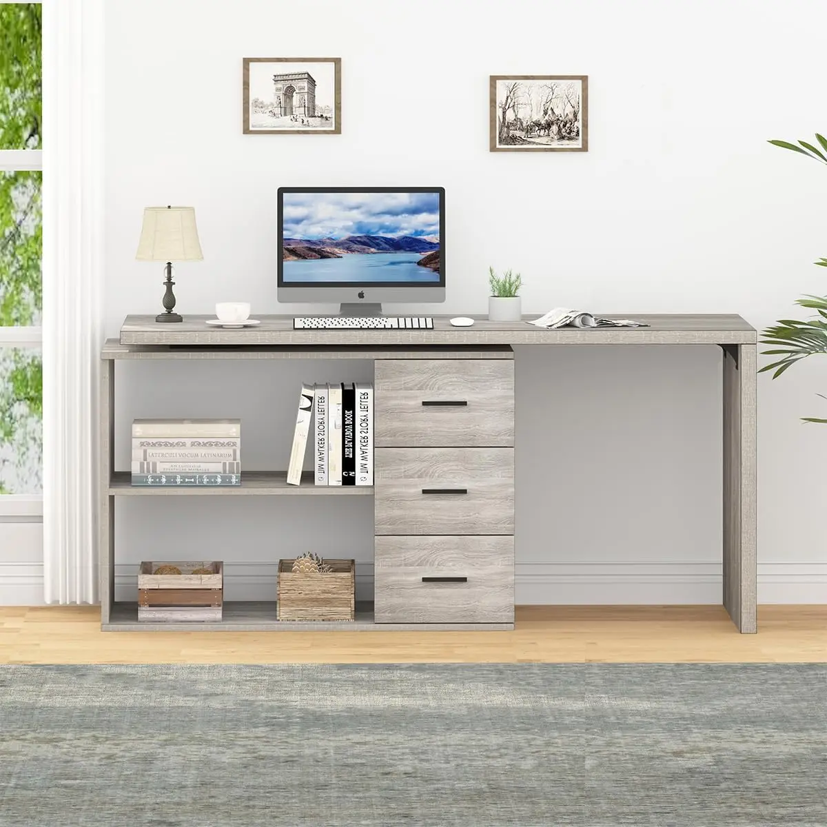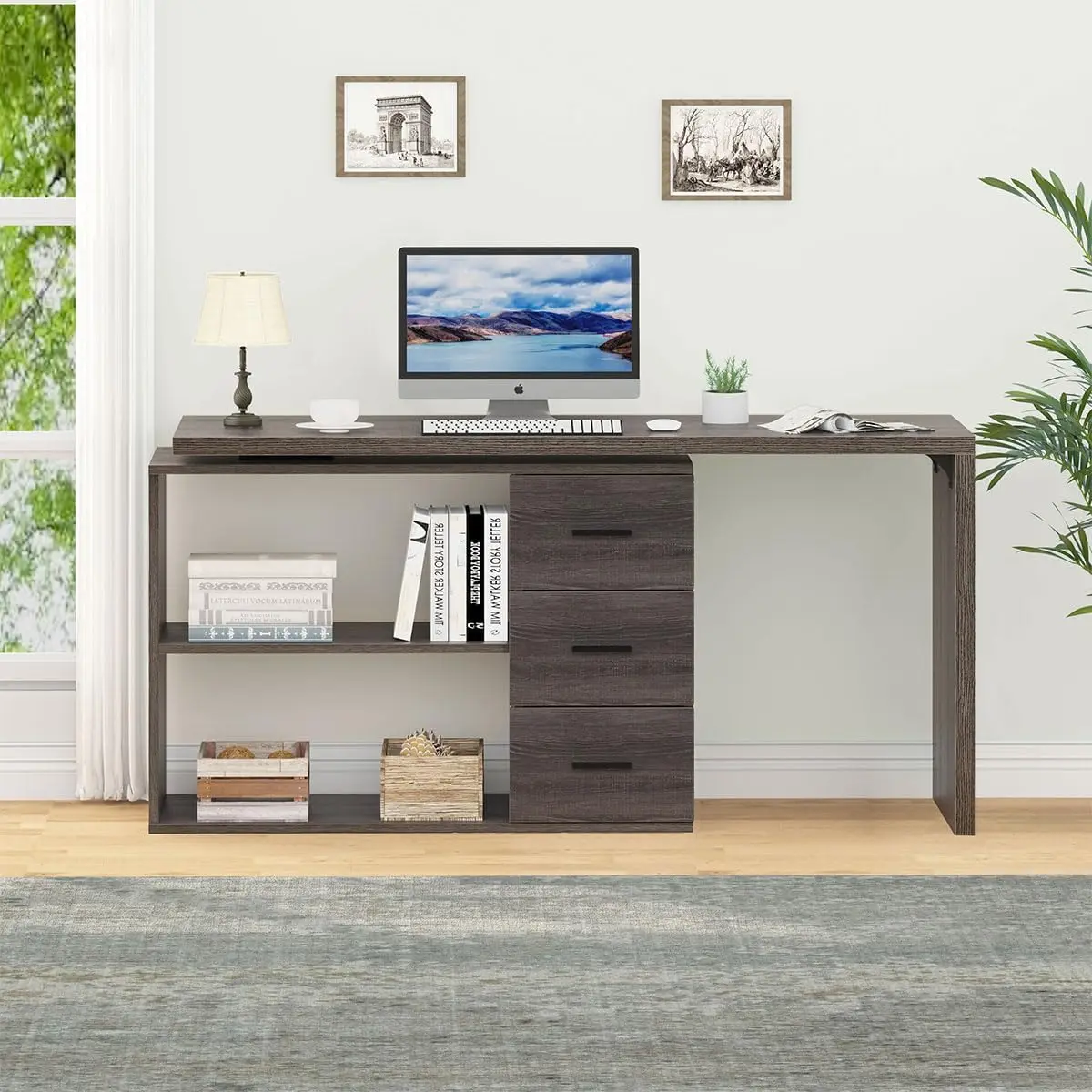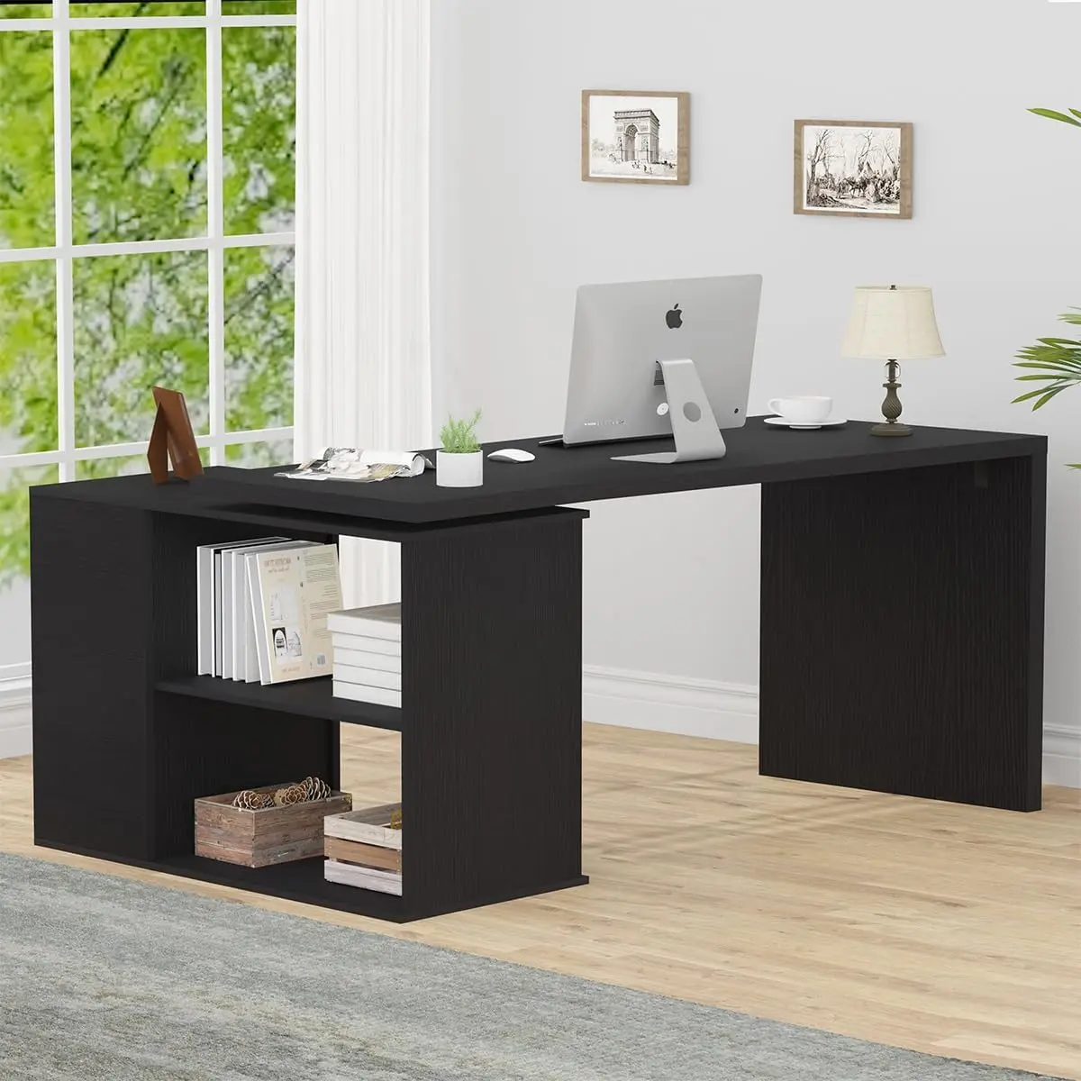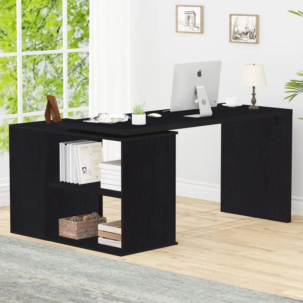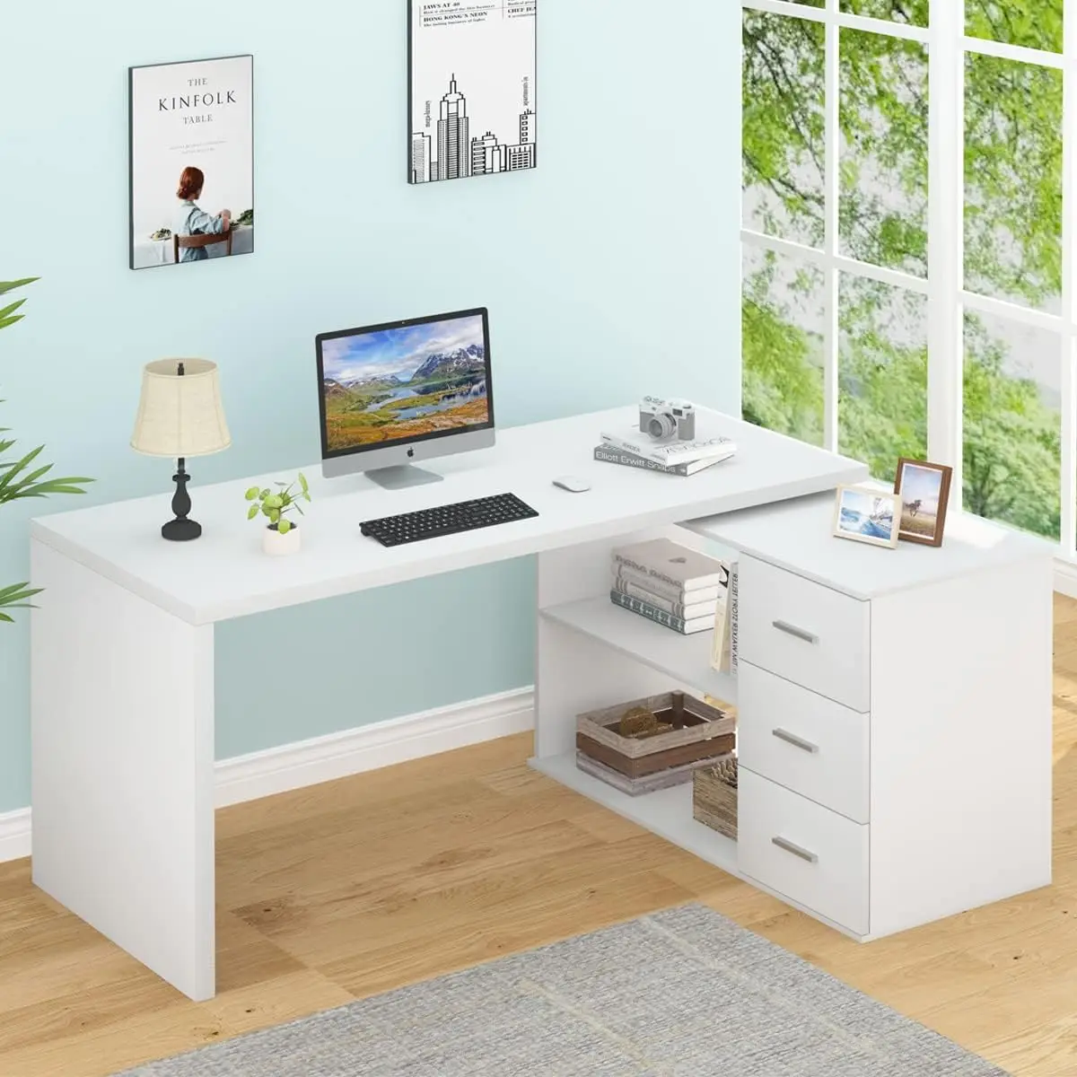 - Keep Clutter out of Sight and out of Mind: The open and long 2 tier shelves of the L shape desk provide a place for essential office supplies at arm's reach, while the 3 drawers let you tuck away anything from loose odds and ends to important files. The shelves and drawers of the L shaped desk maximally utilize your home office and provide enough space for storage.
