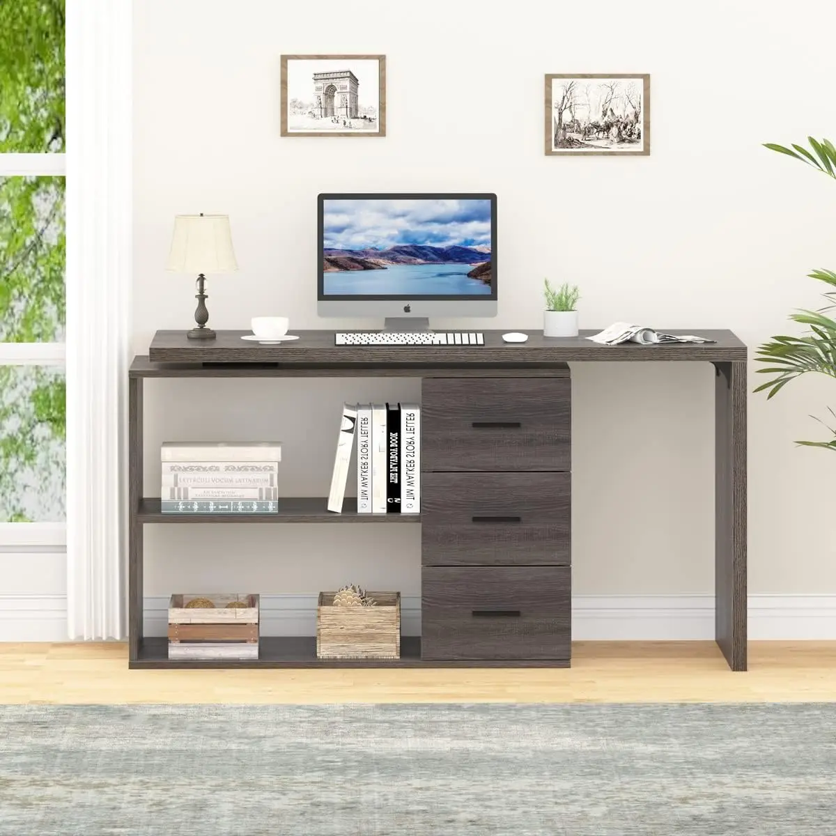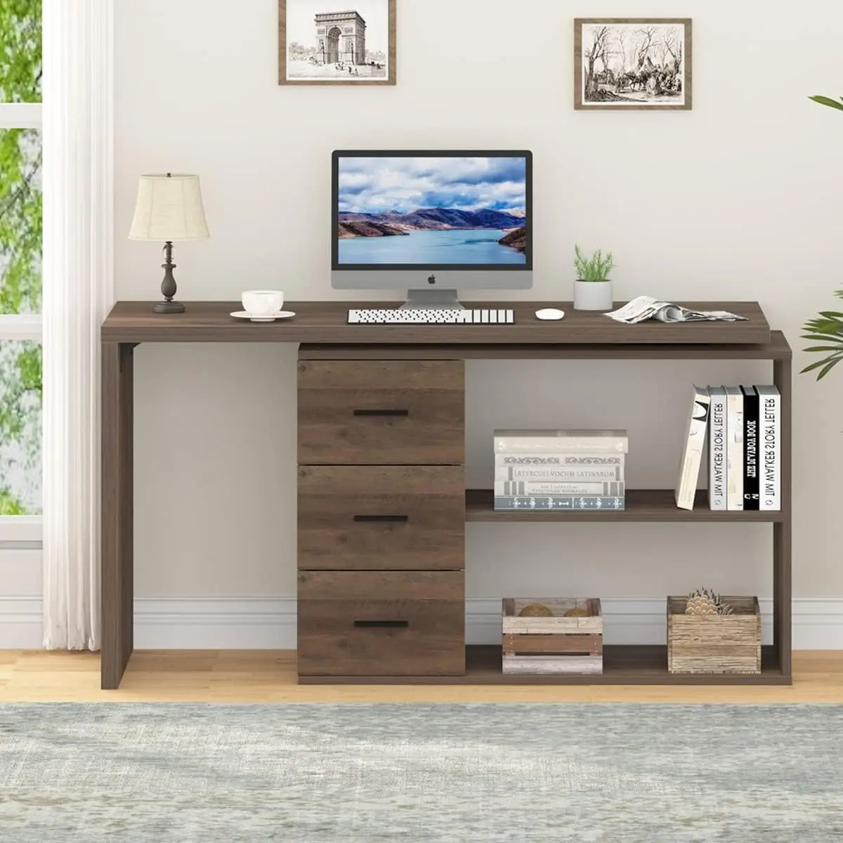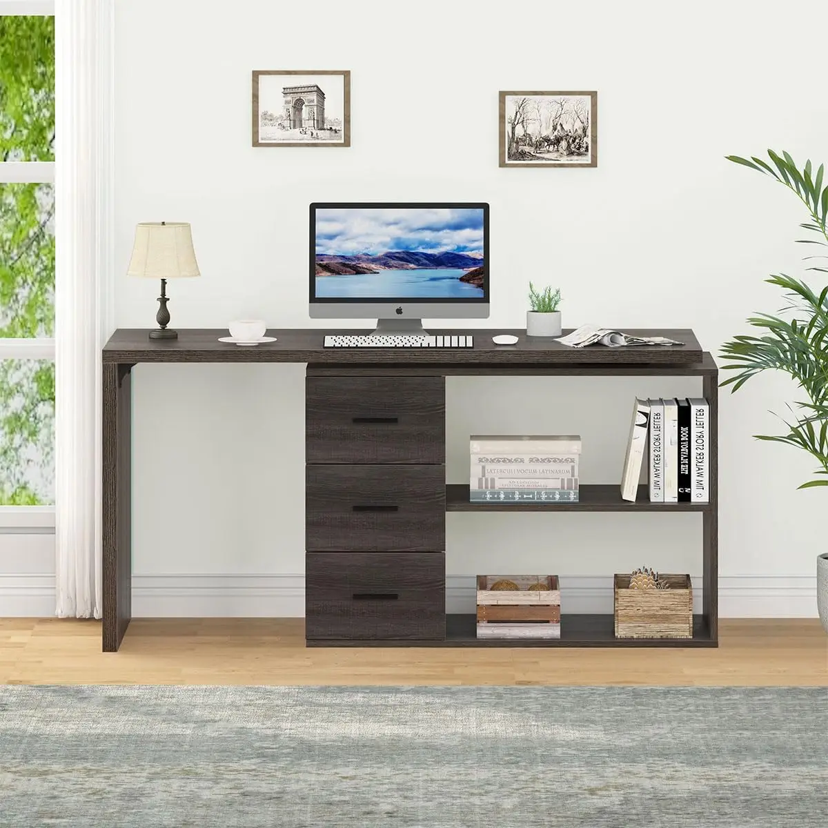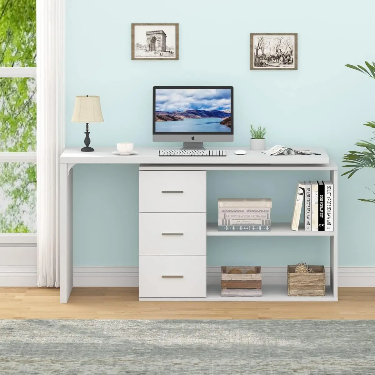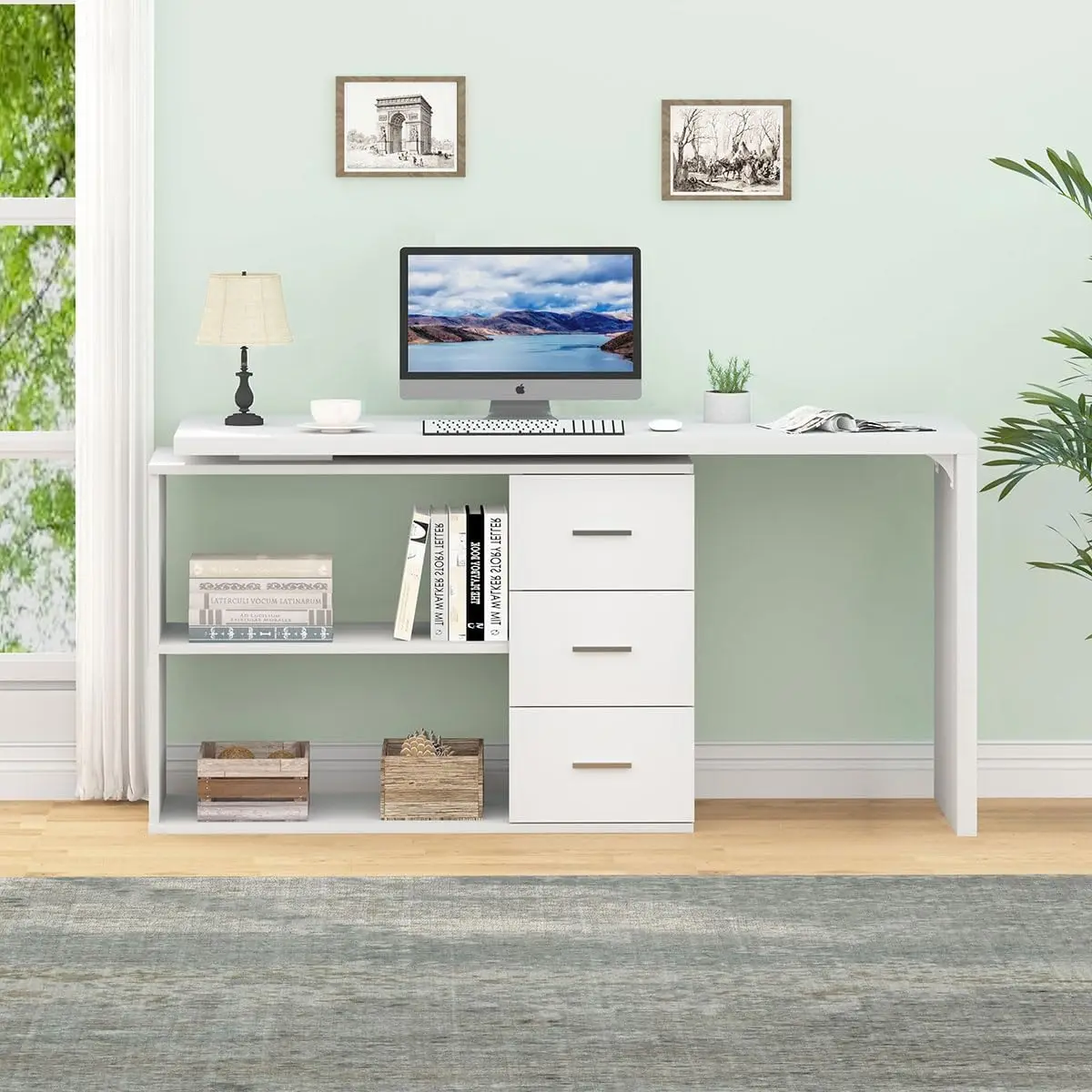 - Keep Clutter out of Sight and out of Mind: The open and long 2 tier shelves of the L shape desk provide a place for essential office supplies at arm's reach, while the 3 drawers let you tuck away anything from loose odds and ends to important files. The shelves and drawers of the L shaped desk maximally utilize your home office and provide enough space for storage.