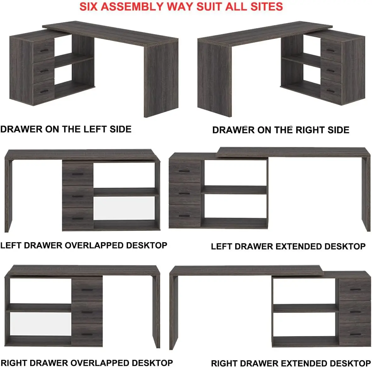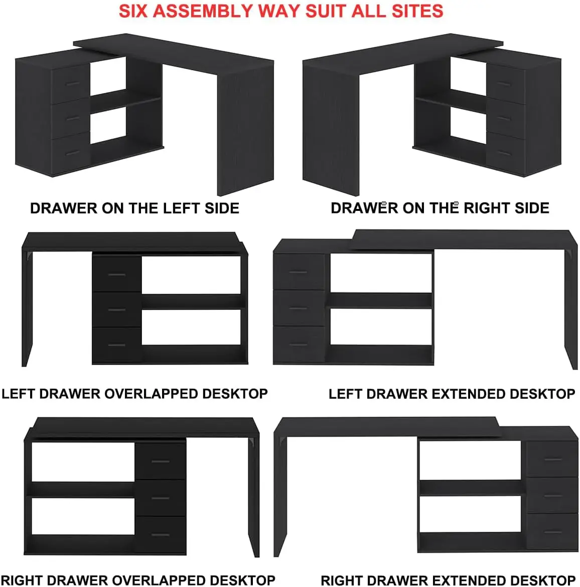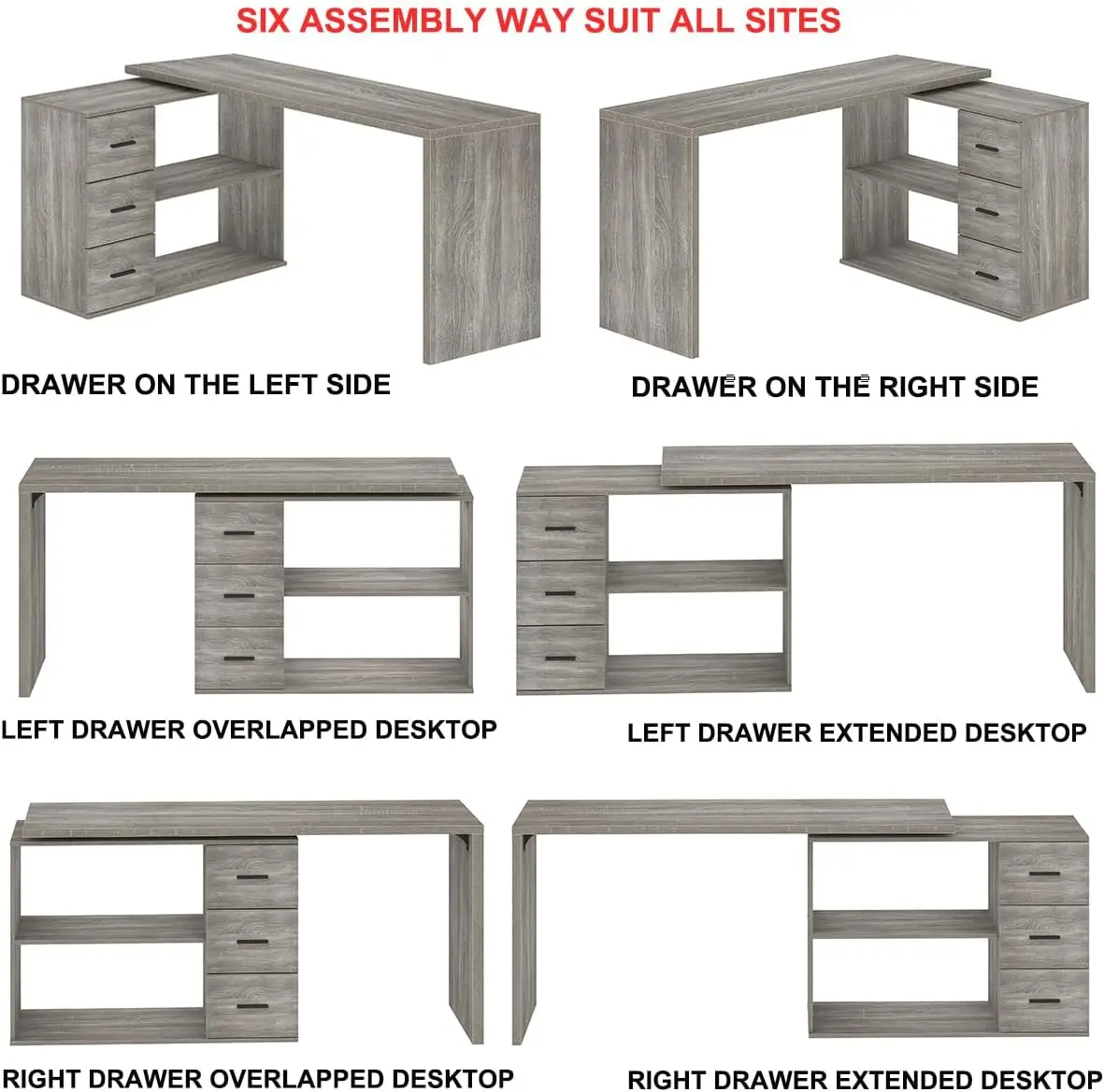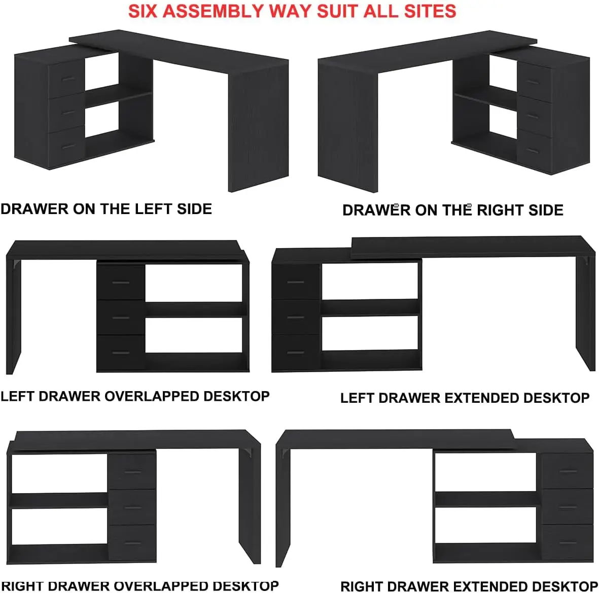 - Reversible and Space-Saving: Our reversible l shaped computer desk with drawers offers six different assembly options, allowing you to freely choose according to your space and needs. From the L-shaped configuration that enhances work efficiency to the parallel layout that frees up more activity space, our multi-functional design is at your fingertips!
