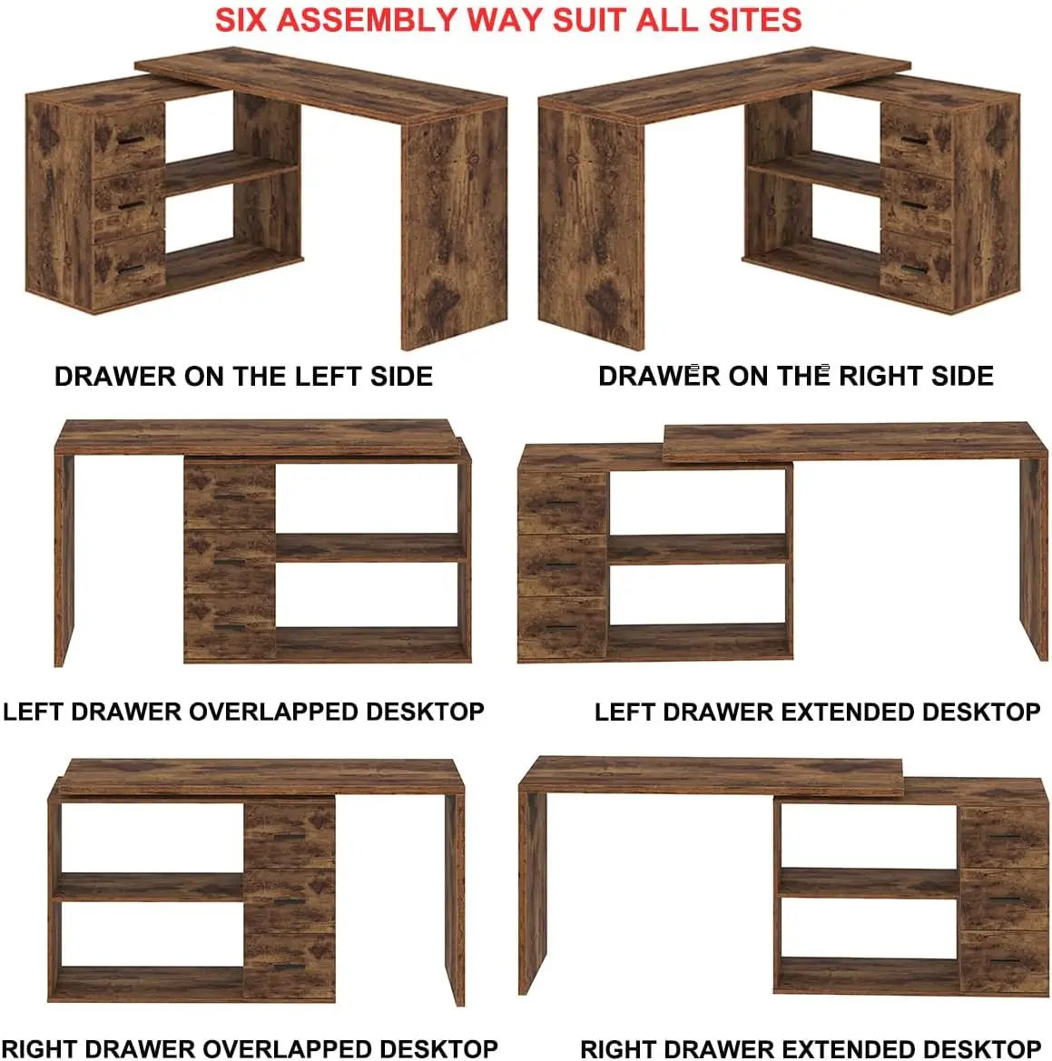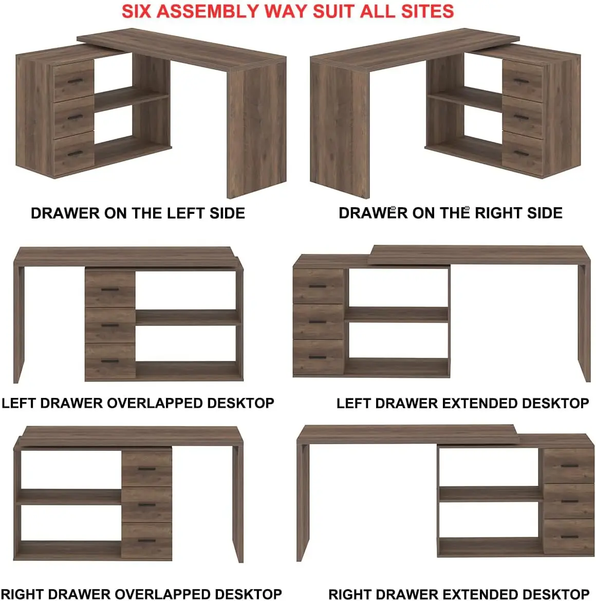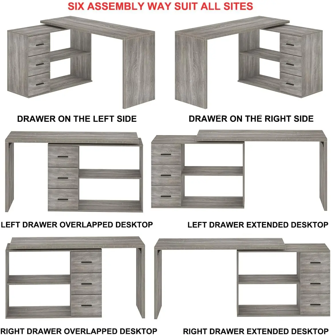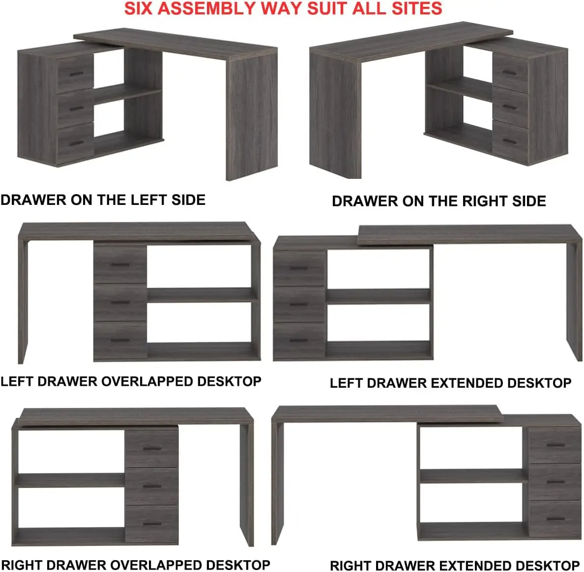 - Reversible and Space-Saving: Our reversible l shaped computer desk with drawers offers six different assembly options, allowing you to freely choose according to your space and needs. From the L-shaped configuration that enhances work efficiency to the parallel layout that frees up more activity space, our multi-functional design is at your fingertips!