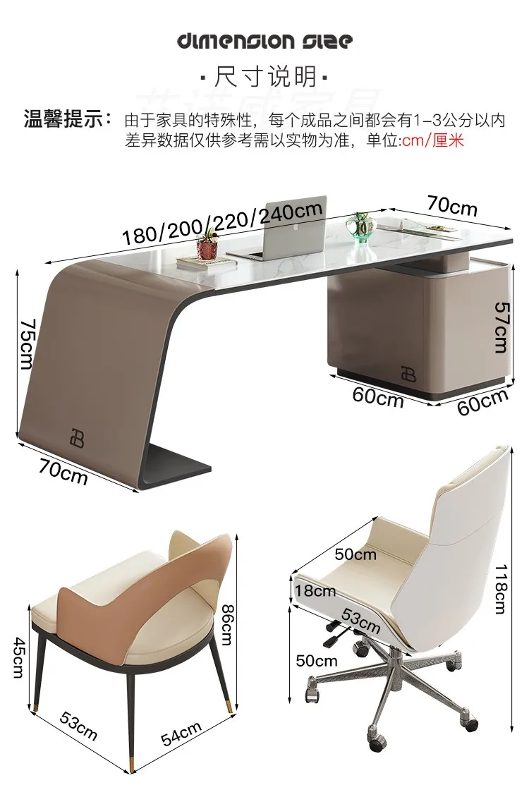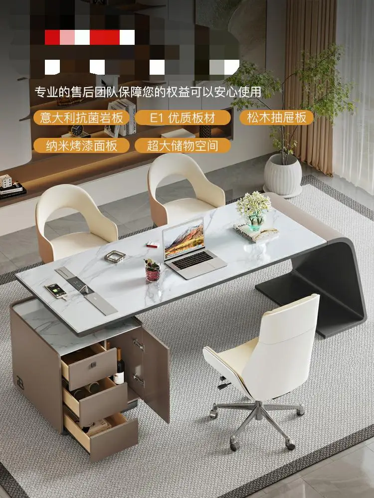 Italian minimalist desk designer high-end desk modern luxury rock plate boss household office desk chair combination