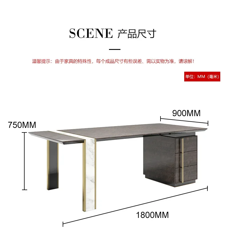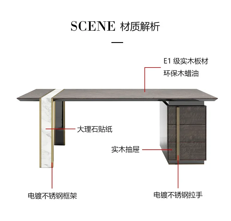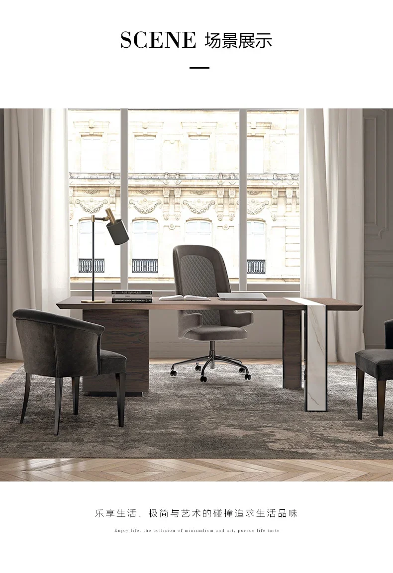 Italian style minimalist solid wood desk villa designer modern light luxury large office desk