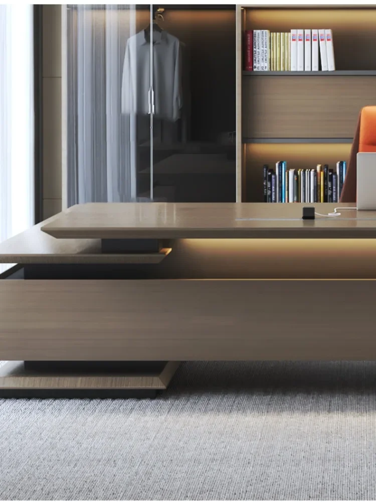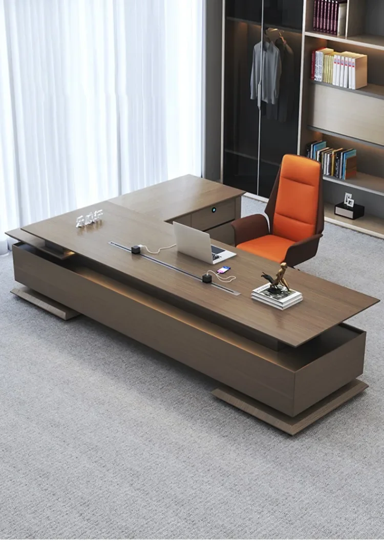 Luxury Office Desk Wood Executive Computer L Shaped Workbench Storage Desktops Drawers Standing Scrivania Gaming Office Supplies
