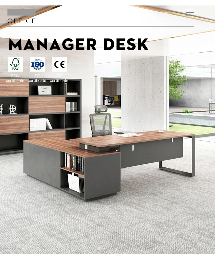 Modern director office table cheap ekintop I shape wooden ceo boss luxury office furniture l shape executive desk