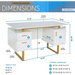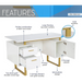 Storage Drawers and Cabinet 51.25” W-Modern Office Large Floating Desktop Surface Desk, White/Gold