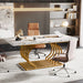 Tribesigns 63" Modern Office Desk, White and Gold Executive Desk, Large Computer Desk Home Office Desk with Gold Metal Frame