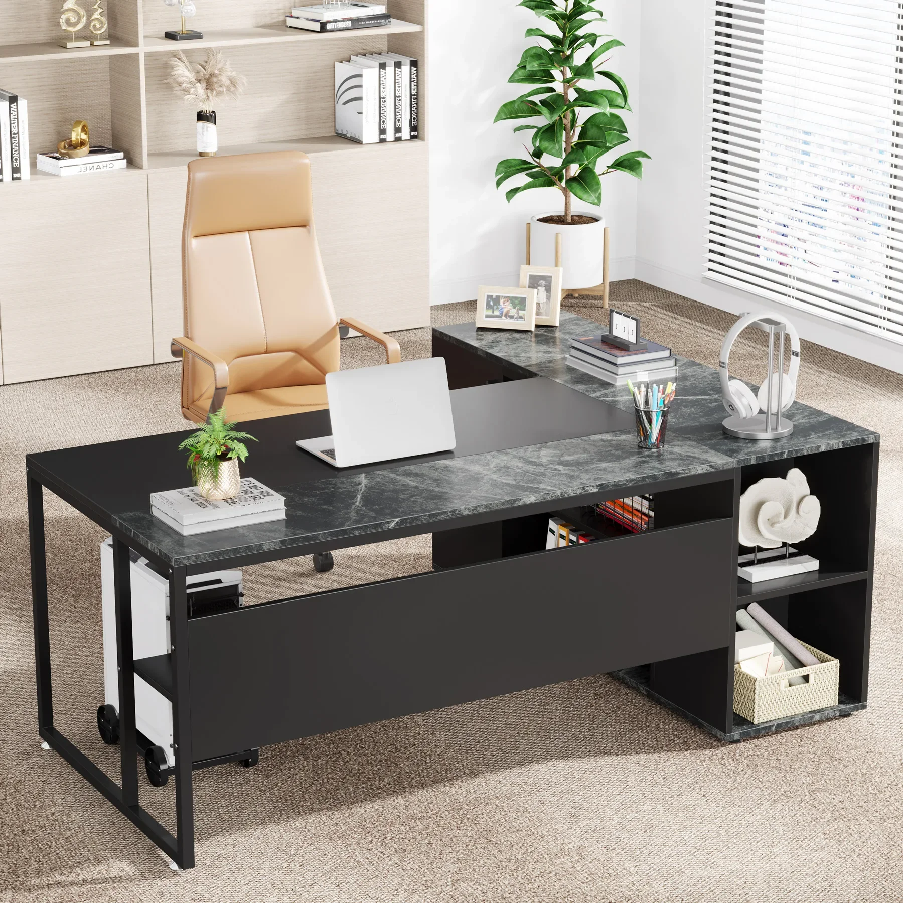 Tribesigns 71 inch Executive Desk, L Shaped Desk with Cabinet Storage, Executive Office Desk with Shelves, Business Furniture