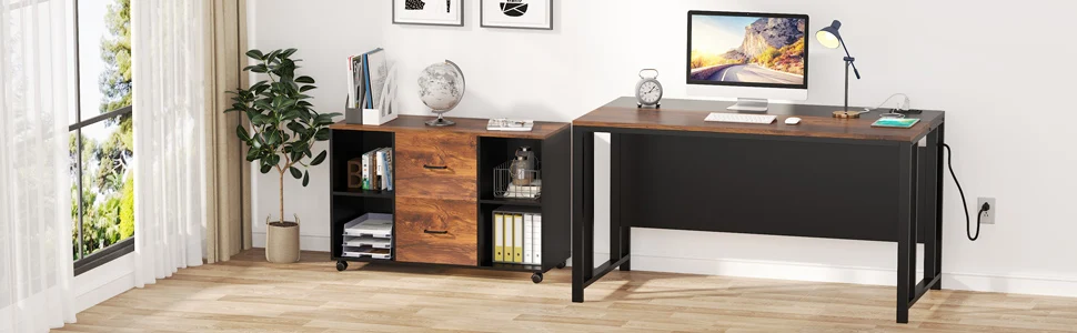 ✔【LARGE STORAGE CAPACITY】: Filing cabinet with open storage shelves and 2 drawers is designed to keep your office machines, paper and supplies organized. This lateral file cabinet can be fixed beside or under desk.