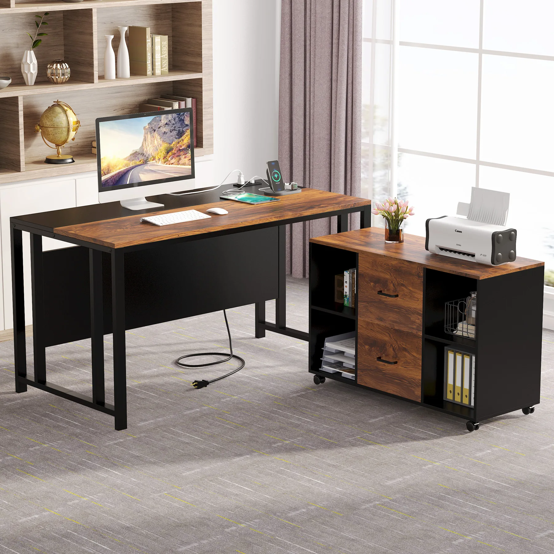 ✔【MULTIPURPOSE OFFICE FURNITURE】: L shaped design fits nicely in any tight space, allows you to take full advantage of your abode office workspace. This executive desk can be served as a computer table, office workstation, study writing desk or gaming desk. Rolling on four wheels, this printer stand can be moved and adjusted in position freely.