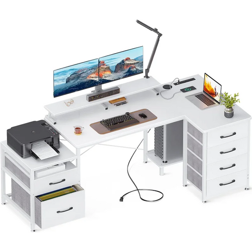 Original price $618.99Original price $618.99 - Original price $618.99Original price $618.99Current price $495.99$495.99 - $495.99Current price $495.99| /KKL L Shaped Computer Desk with File Drawers & 3 Power Outlets & 2 USB Ports, 72 Inch Home Office Desk with Printer Cabinet & Mo