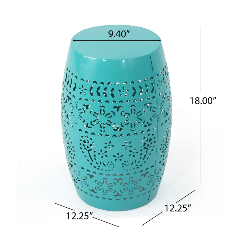 Belle Outdoor 12" Lace Cut Iron Side Table, Teal center table living room side table living room furniture