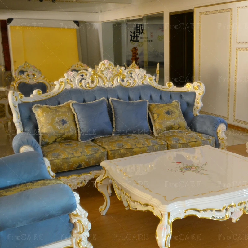 European solid wood sofa French luxury villa living room Custom high-end fabric sofa set