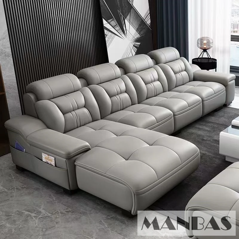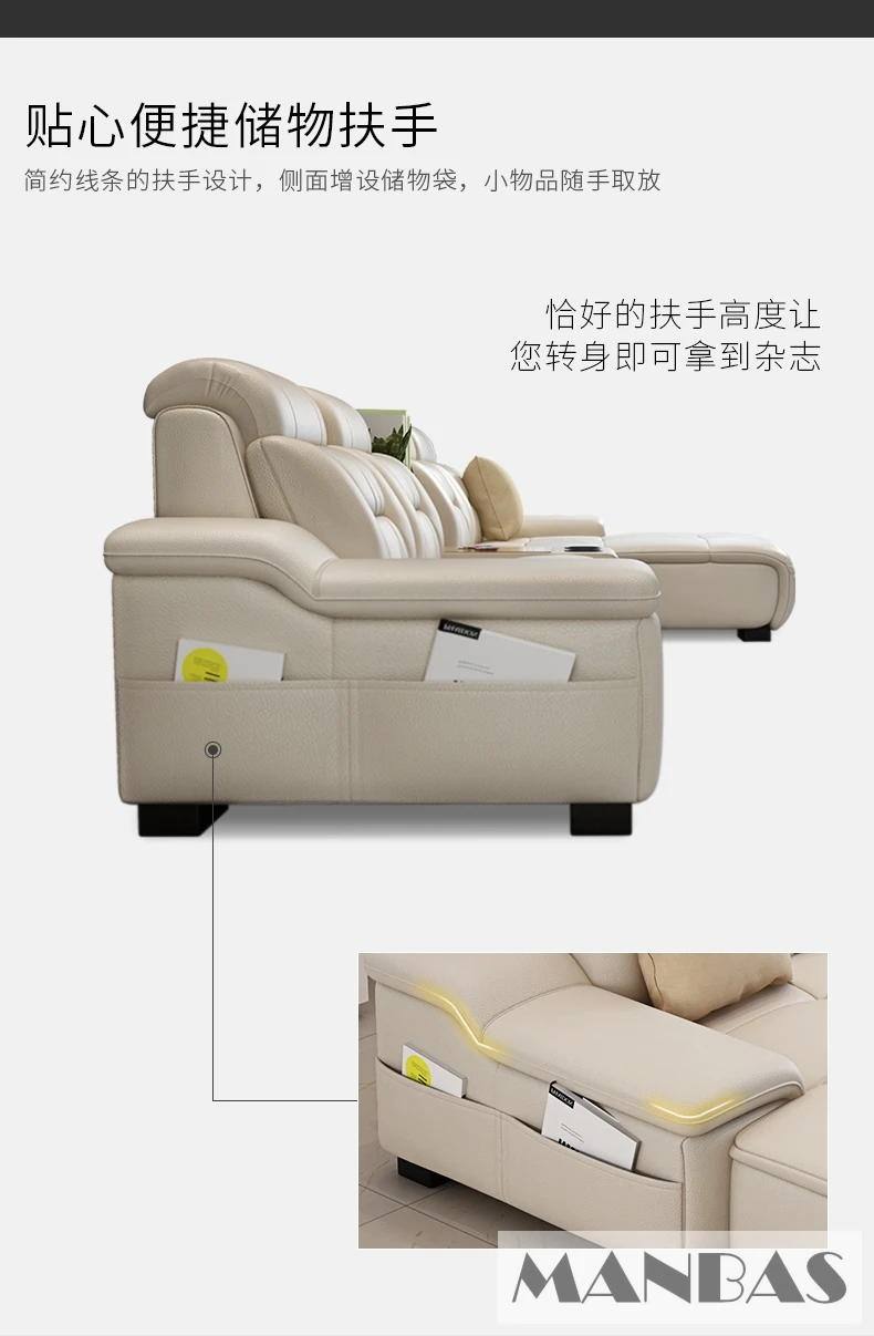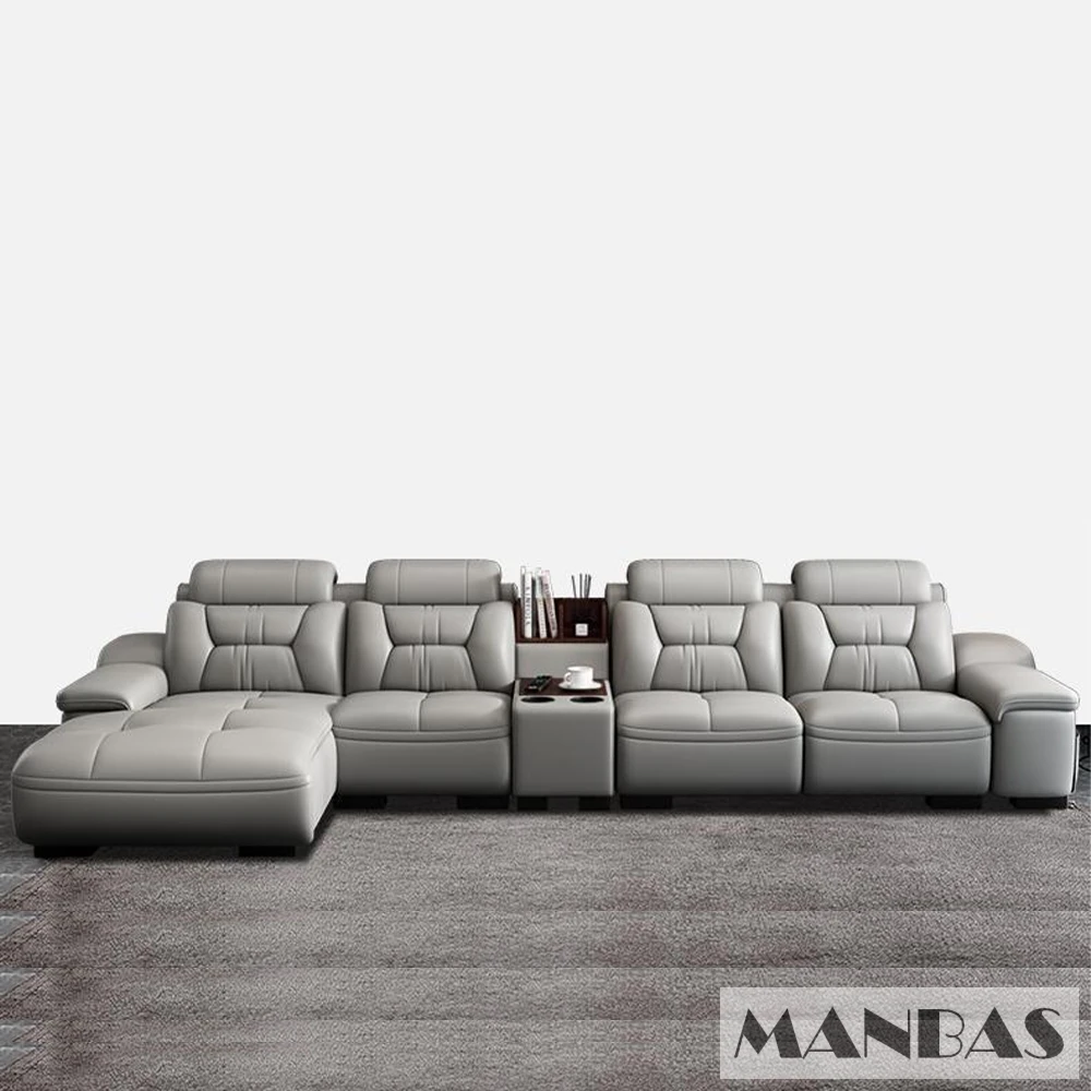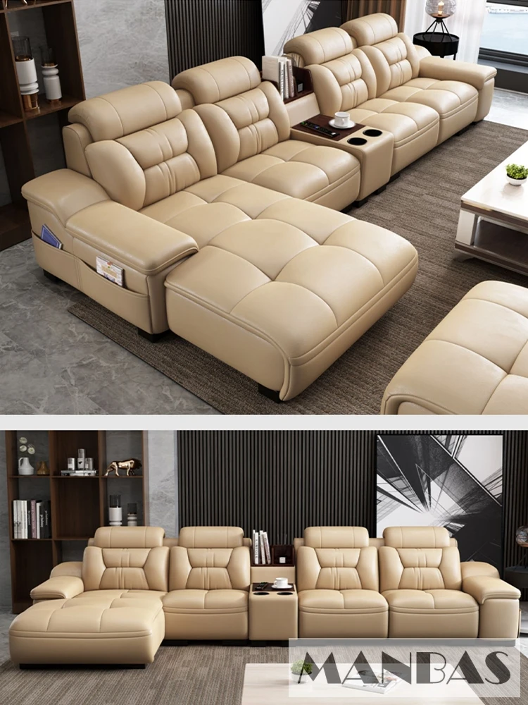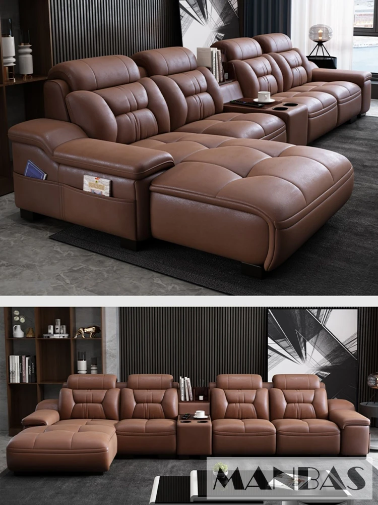 MINGDIBAO Italian Genuine Leather Sectional Sofa with USB Charge, Bluetooth Speaker and Projector - Perfect for Your Living Room