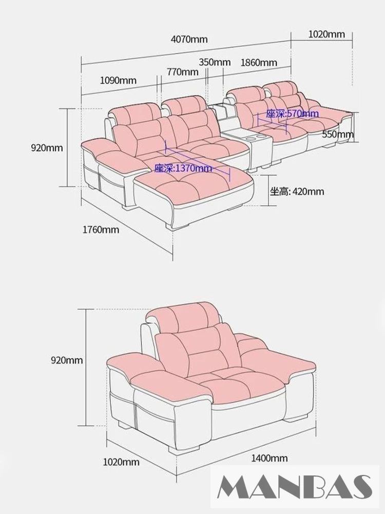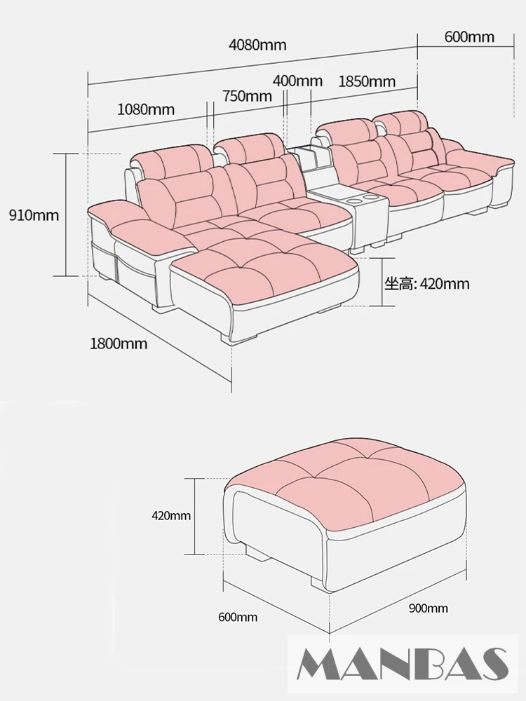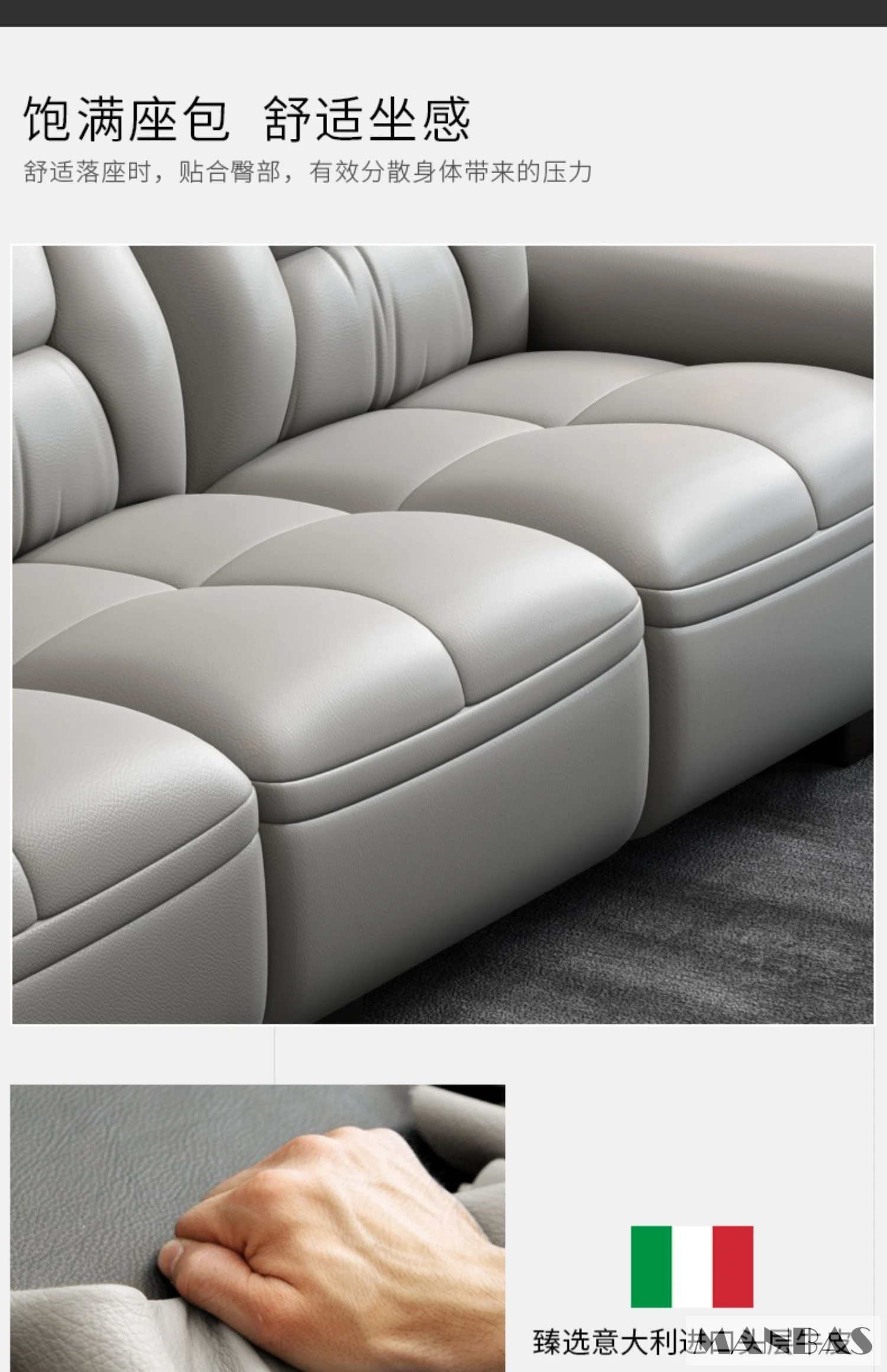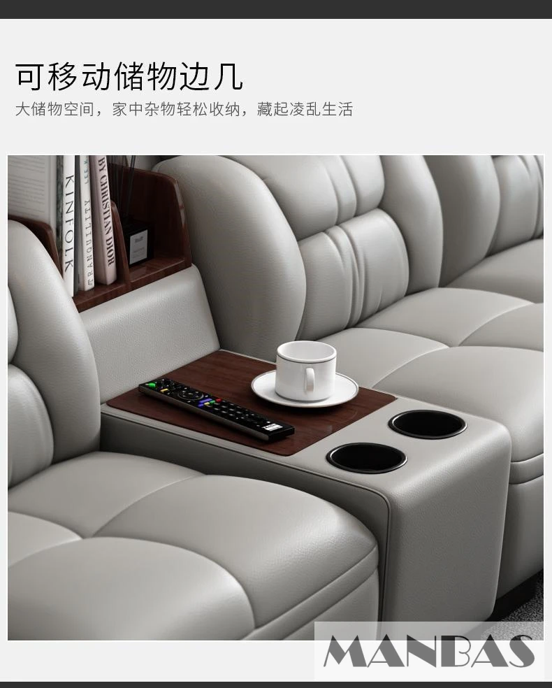 MINGDIBAO Italian Genuine Leather Sectional Sofa with USB Charge, Bluetooth Speaker and Projector - Perfect for Your Living Room