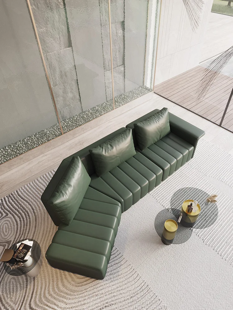 Minimalist green curved l shape sofa set furniture living room sofas modern Italian luxury leather sofa
