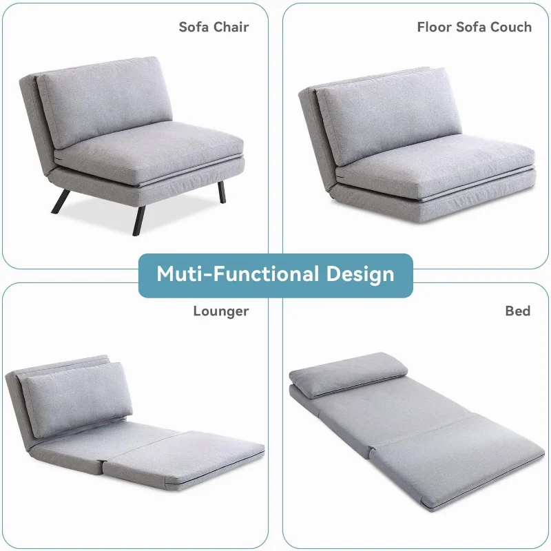 • Folding Bed Sofa Chair - Foldable design with 3-in-1 multifunctional performance. Regarding your different needs, it can be easily converted into an upholstered sofa, a laid-back chaise longue or a comfortable bed. You won't have to worry about unwanted guests coming to spend the night. The folding function of this lounge chair can also save more storage space.