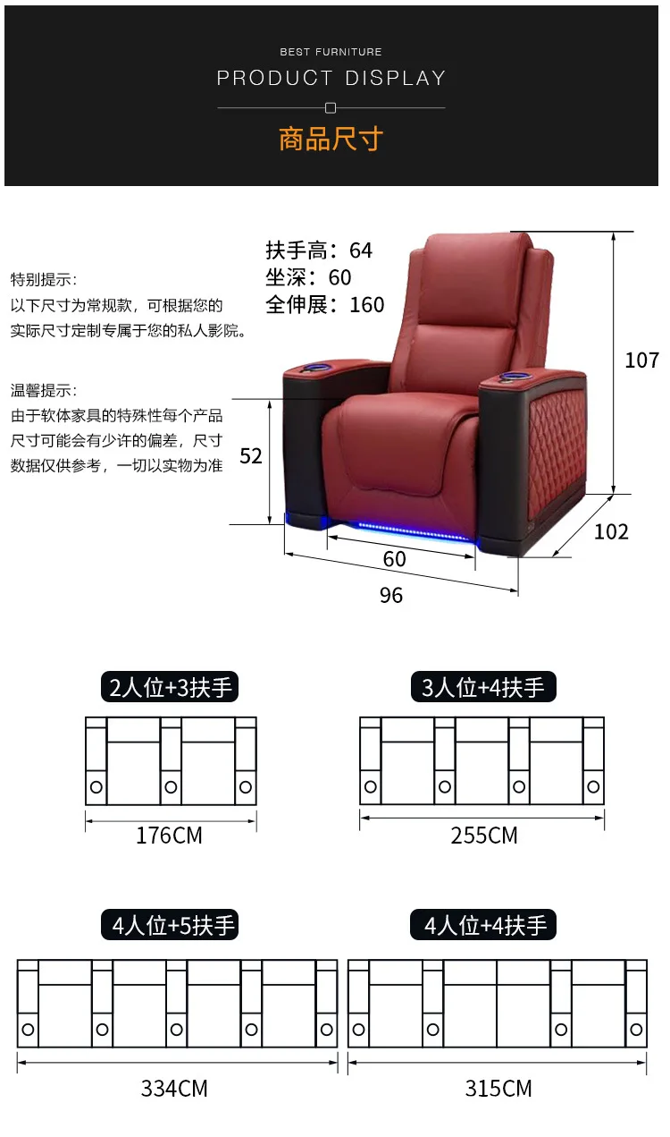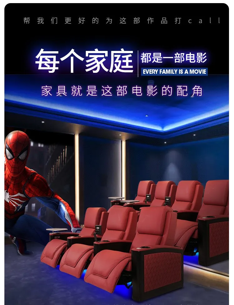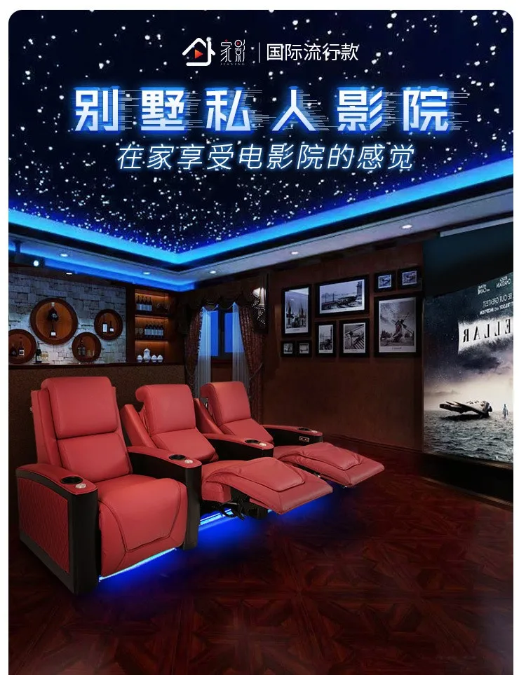 Private Home Cinema Video Room Electric Sofa Three Person Genuine Leather Movie Hall VIP Intelligent Viewing Chair
