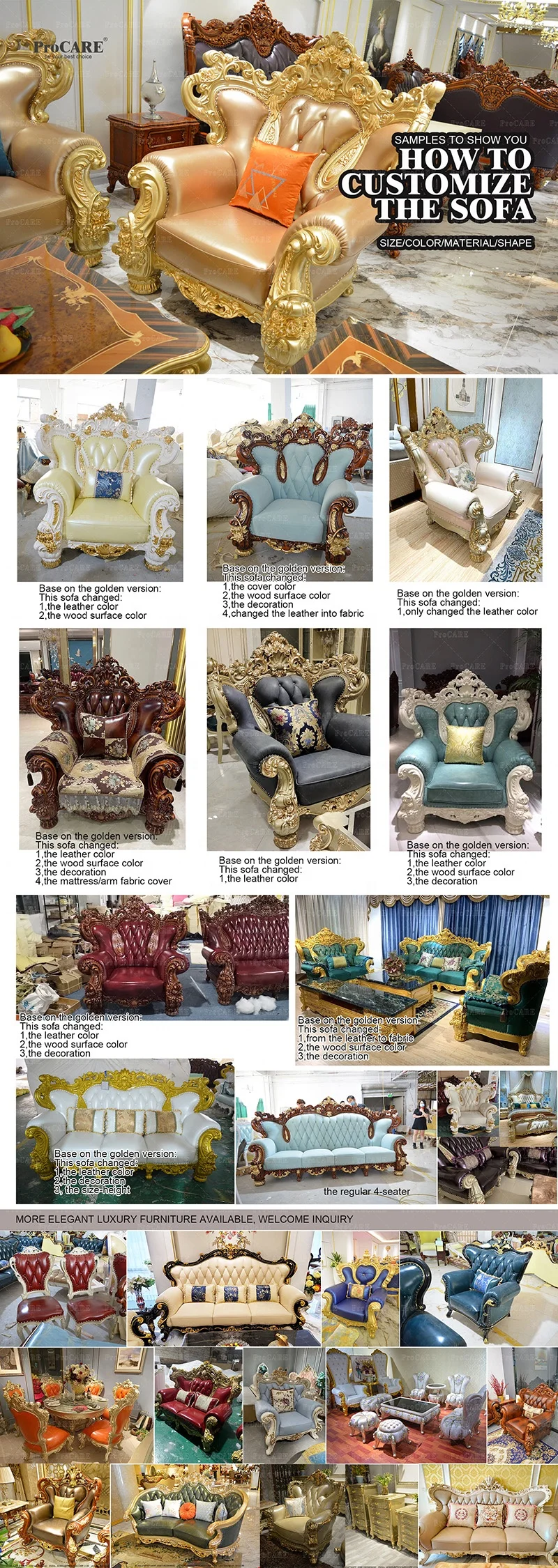ProCARE classic Luxury champagne golden modern antique European royal style living room sofa sets