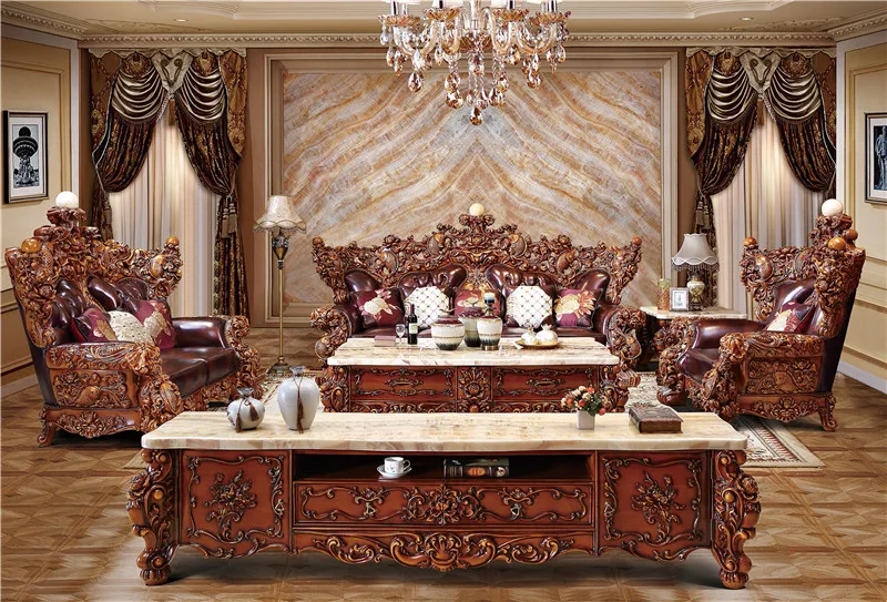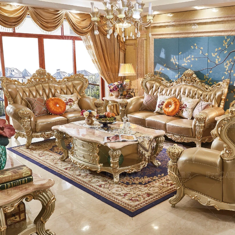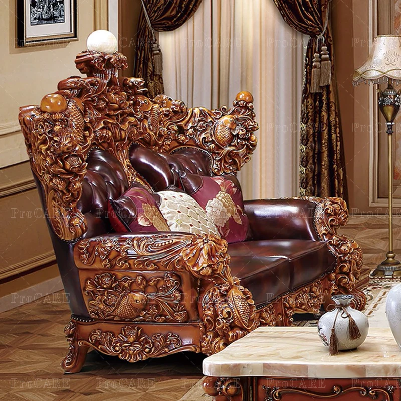 ProCARE European sofa American villa living room genuine leather solid wood carving etro 124 living room sofa sets
