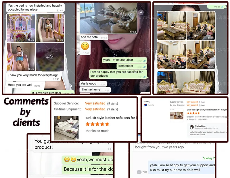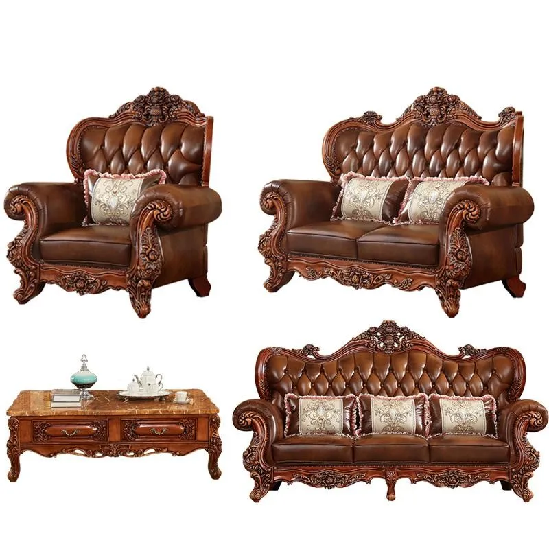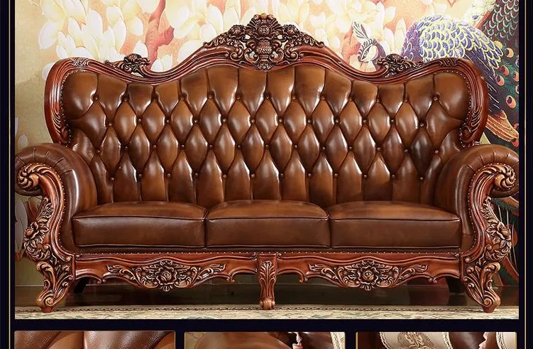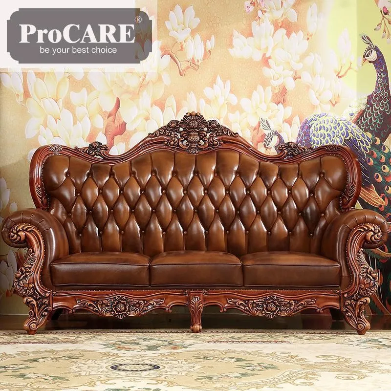 ProCARE European-style genuine leather sofa set sofa wood carving living room furniture